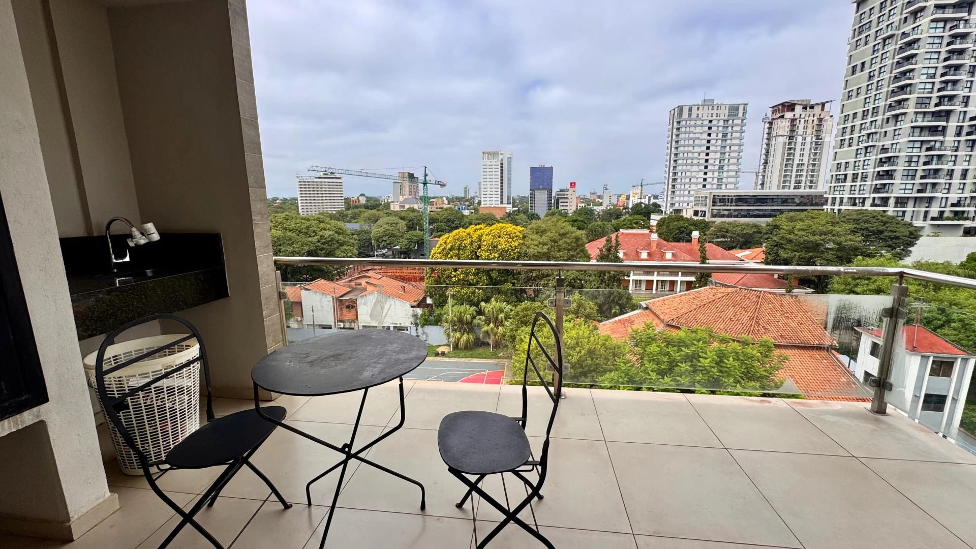 AMPLIO DPTO AMOBLADO, a pasos del shopping del sol: - área social - cocina - habitación - baño - amplio balcón con parrilla El edificio tiene guardias 24 hs, jardín, piscina, quincho con parrilla Gs ***expensas e IVA incluidos 64 m2