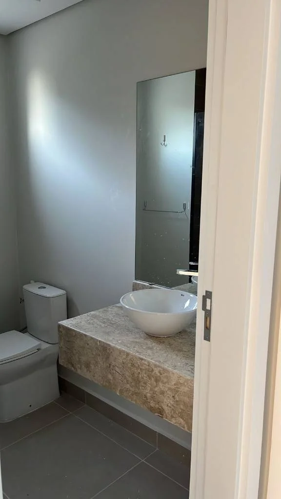 Baño moderno con mampara de vidrio y espejo