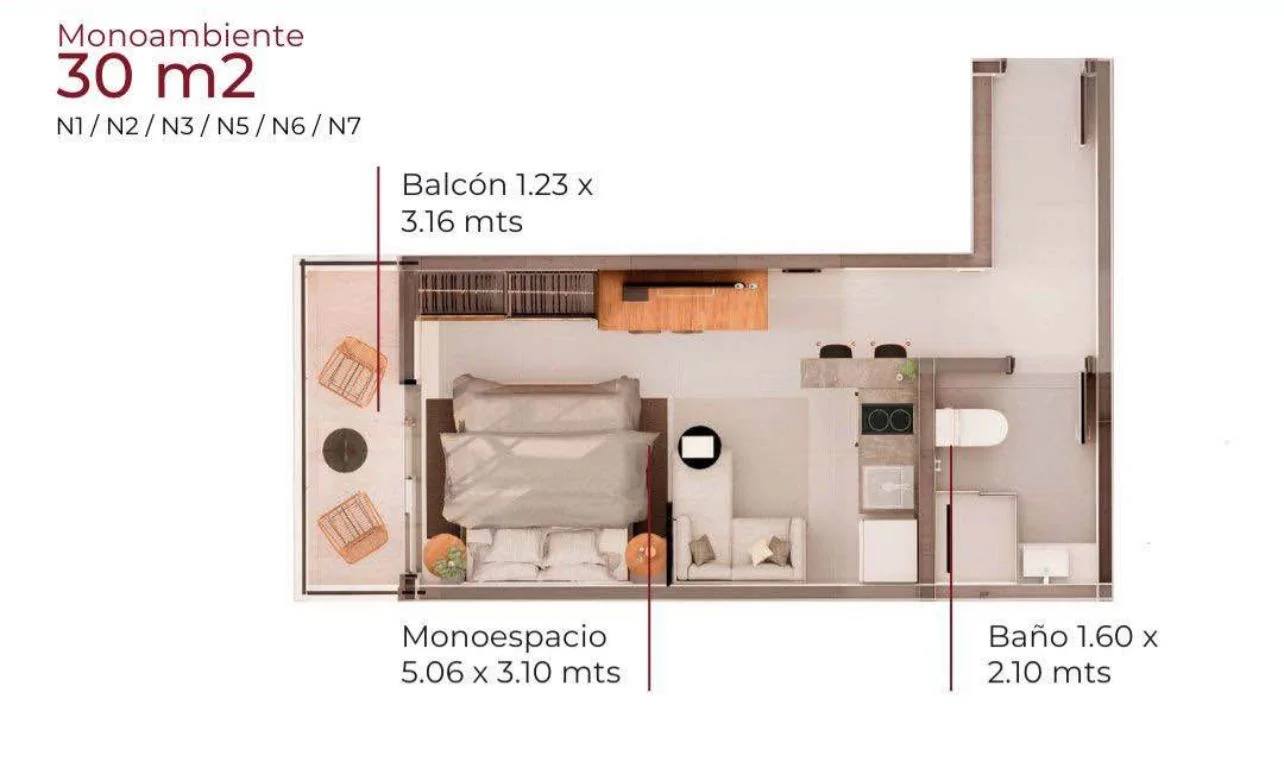 - 3 tipologías de monoambientes