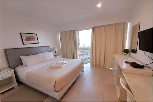 l departamento se encuentra en el piso 5 con una hermosa vista a la Ciudad 91.5 m2 y se distribuye de la siguiente forma: *Cocina Amoblada con Extractor, Anafe, * Amplia Sala Comedor integrados con A.A split , *Dos dormitorios, uno en suite * Balcón * Baño social Amenities * Dos salones de eventos climatizados * Baños sexados con vestuario * Gimnasio * Play room kids * Piscina * Cancha * Salón de masajes * Sauna húmedo y seco * Jacuzzi * Salón de informatica * Sala de reuniones * 1 estacionamiento * Seguridad 24 hs EL PRECIO NO INCLUYE IVA NI EXPENSAS PRECIO INCLUIDO SERIA DE USD. 1650