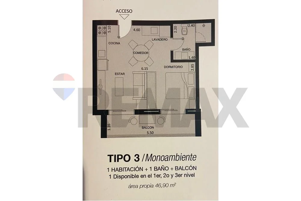 Alquilo moderno monoambiente de 46,9 m² de área propia, ubicado en el piso 3 del edificio Altos de Herrera, en el barrio Herrera. El departamento cuenta con un balcón de 5,50 m, ideal para disfrutar del aire libre y la vista.