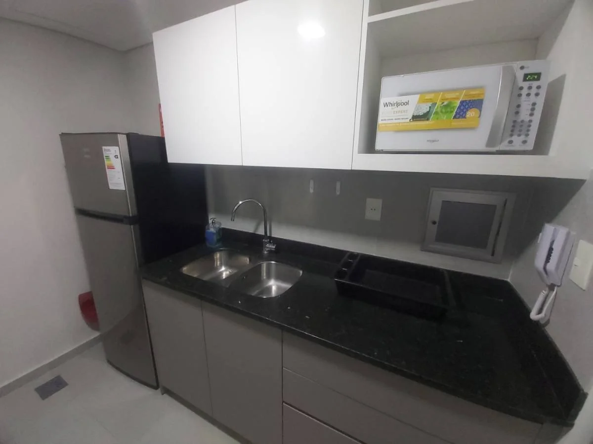 Cocina separada y equipada con lava-secarropas, microondas, anafe, horno, extractor, plancha, hervidora eléctrica, ollas Tramontina, artículos de limpieza.