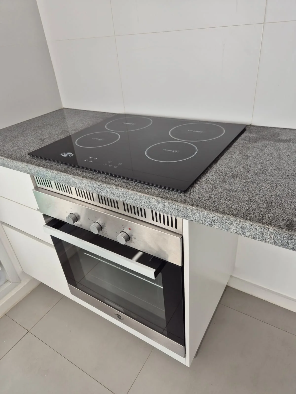 ????Cocina amoblada, anafe de 4 hornallas, extractor campana y horno.