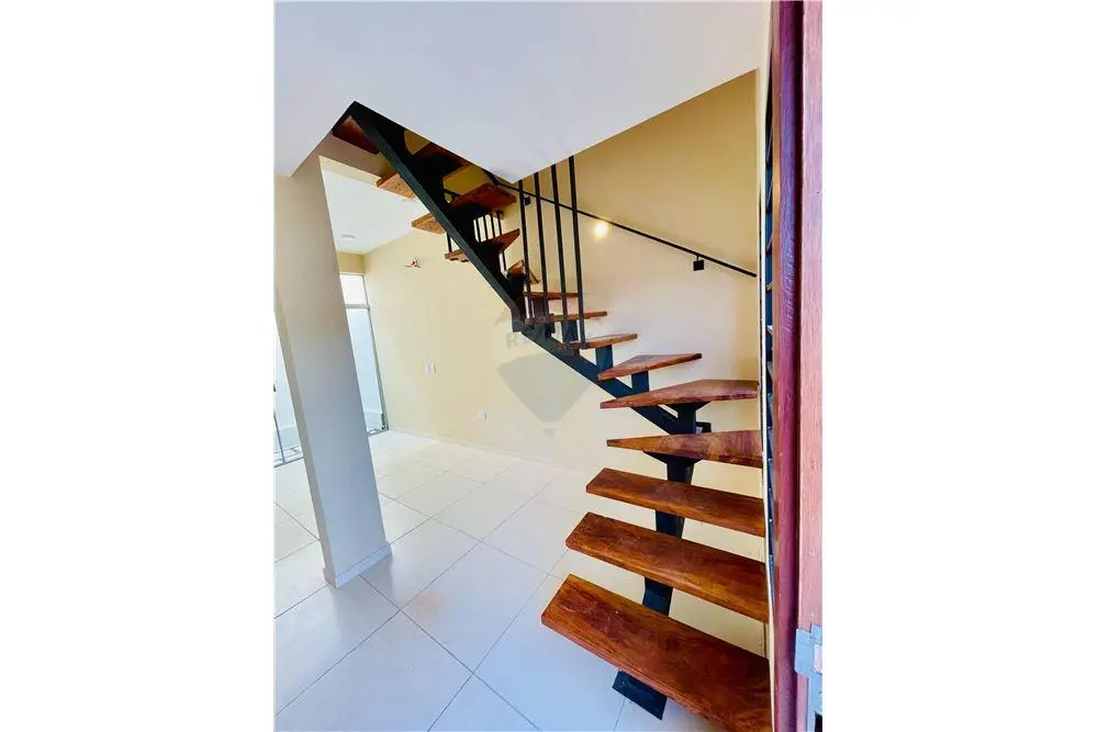 Ambientación con estilo que fusiona la modernidad con el encanto clásico. Escalera de madera qué añade sofisticación, mientras que la iluminación en cada rincón crea un lugar cálido y acogedor.