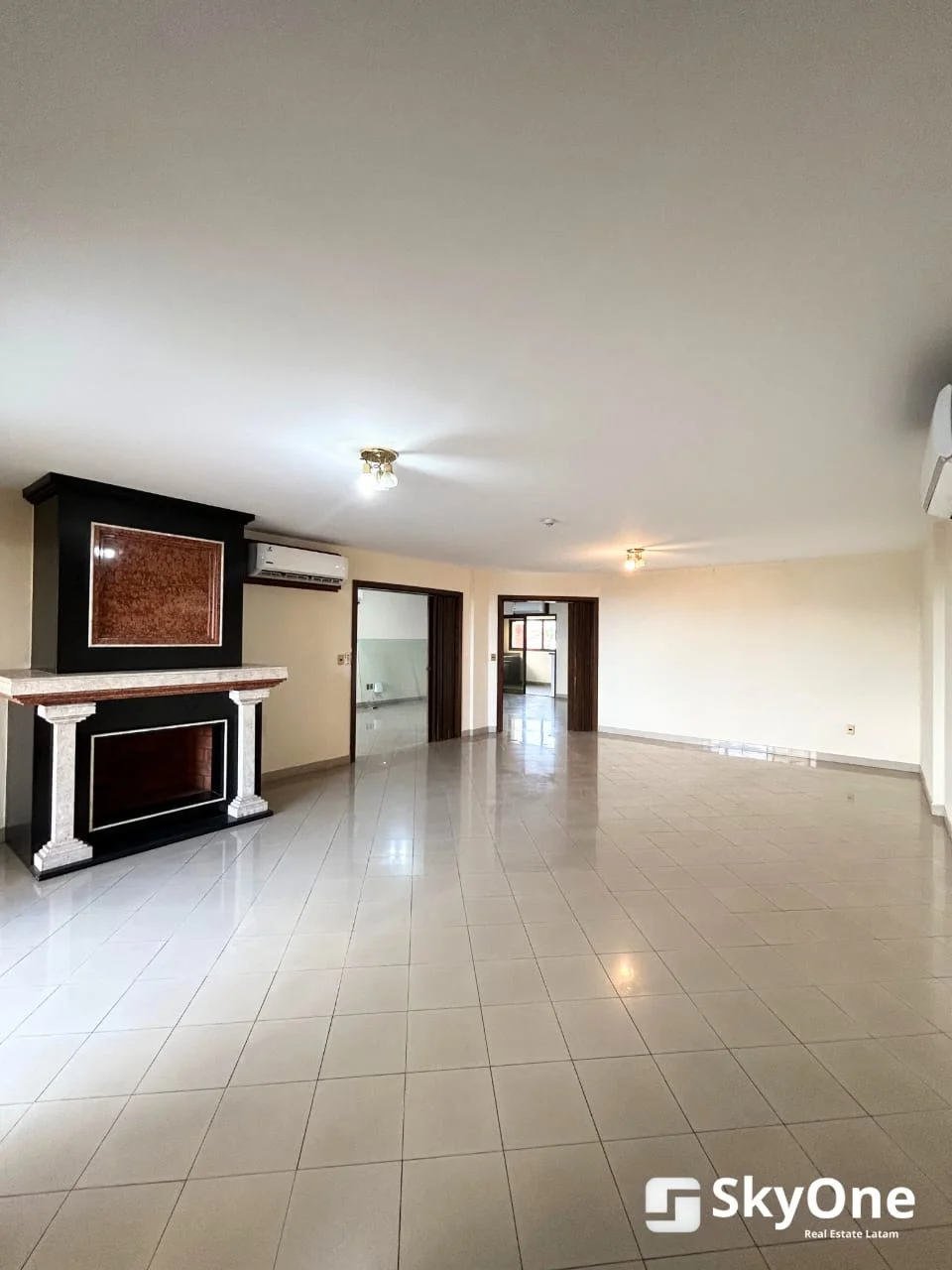 Amplia sala con chimenea