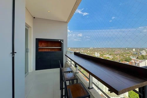 Balcón amplio con parrilla