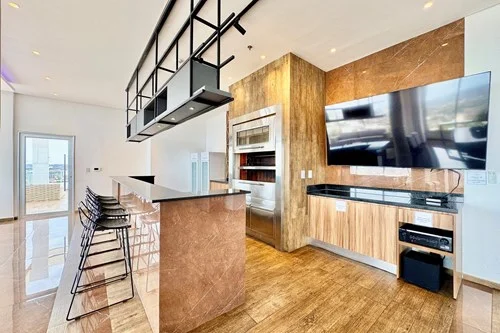 Cocina amoblada con anafe, purificador y desayunador