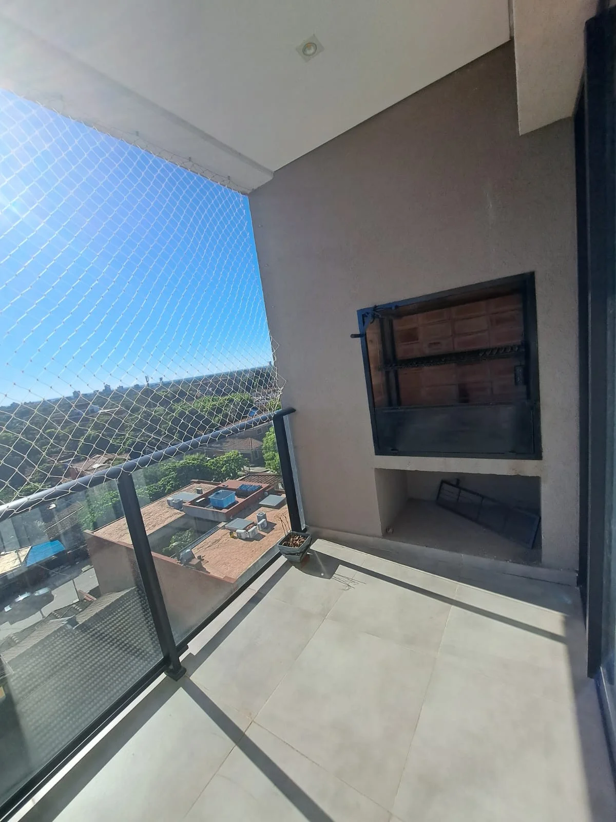 Balcón con parrilla.