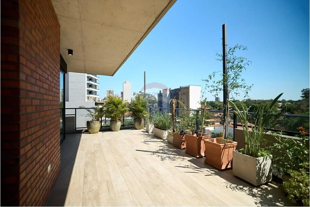 Exclusivo departamento en el 5.º piso, esquina, con todos los ambientes al exterior y una terraza parquizada de 50 m² con vista al pulmón verde de Mburucuyá.