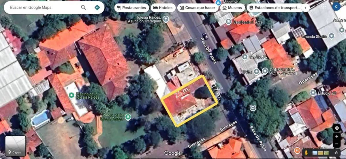 Un frente con 17.5 m y de fondo 25.35 m.