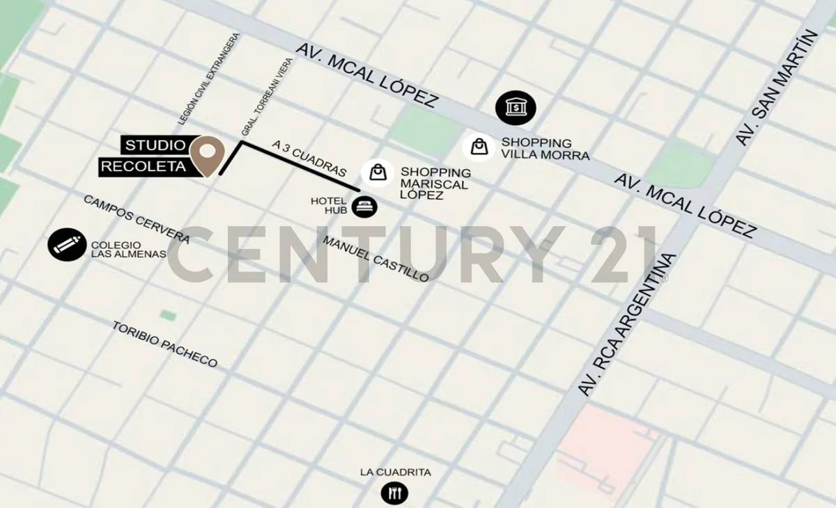 Ubicado a 3 cuadras del Shopping Mariscal, sobre las calles Torreani Viera entre Campos Cervera y Hassler.