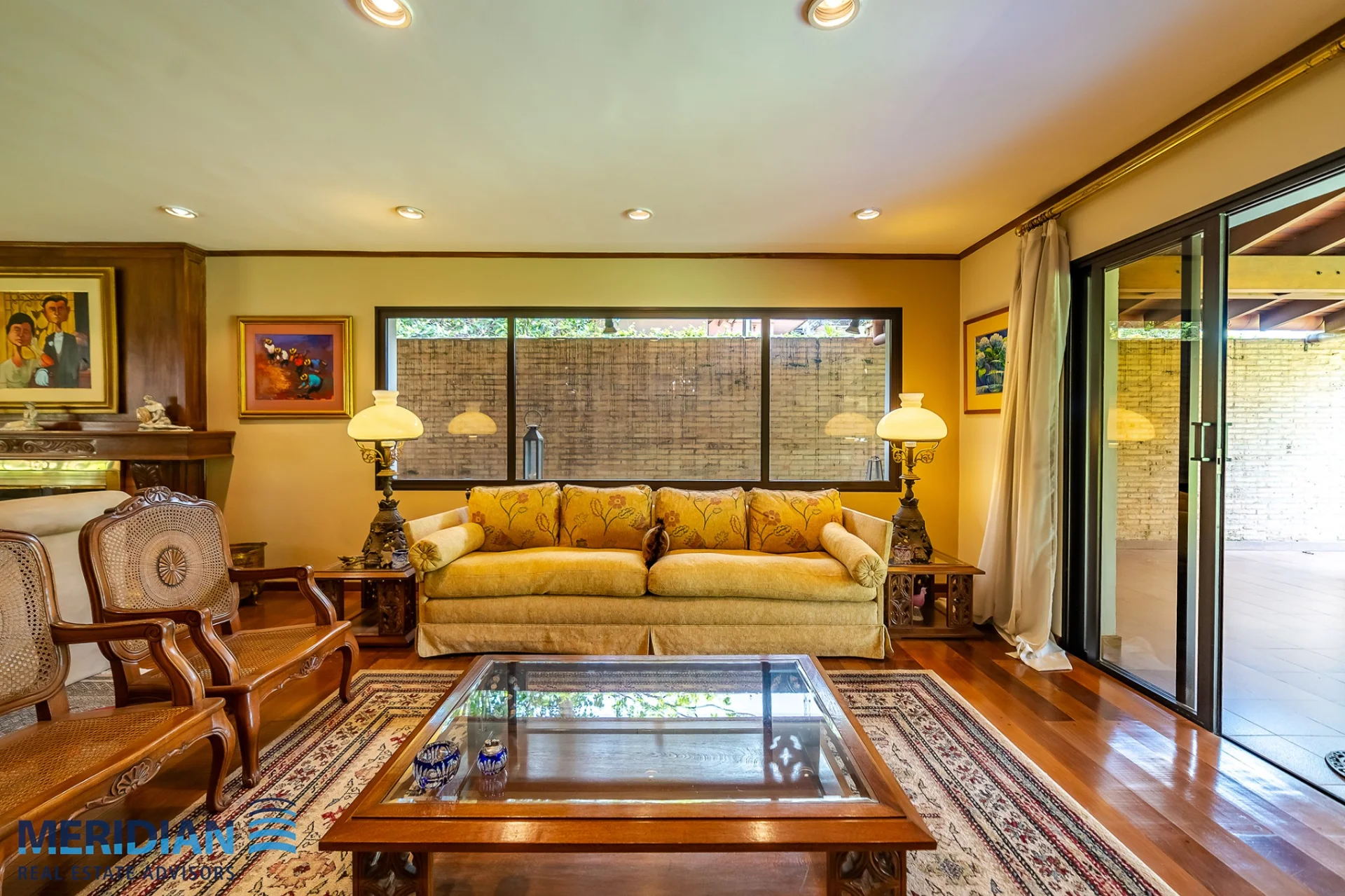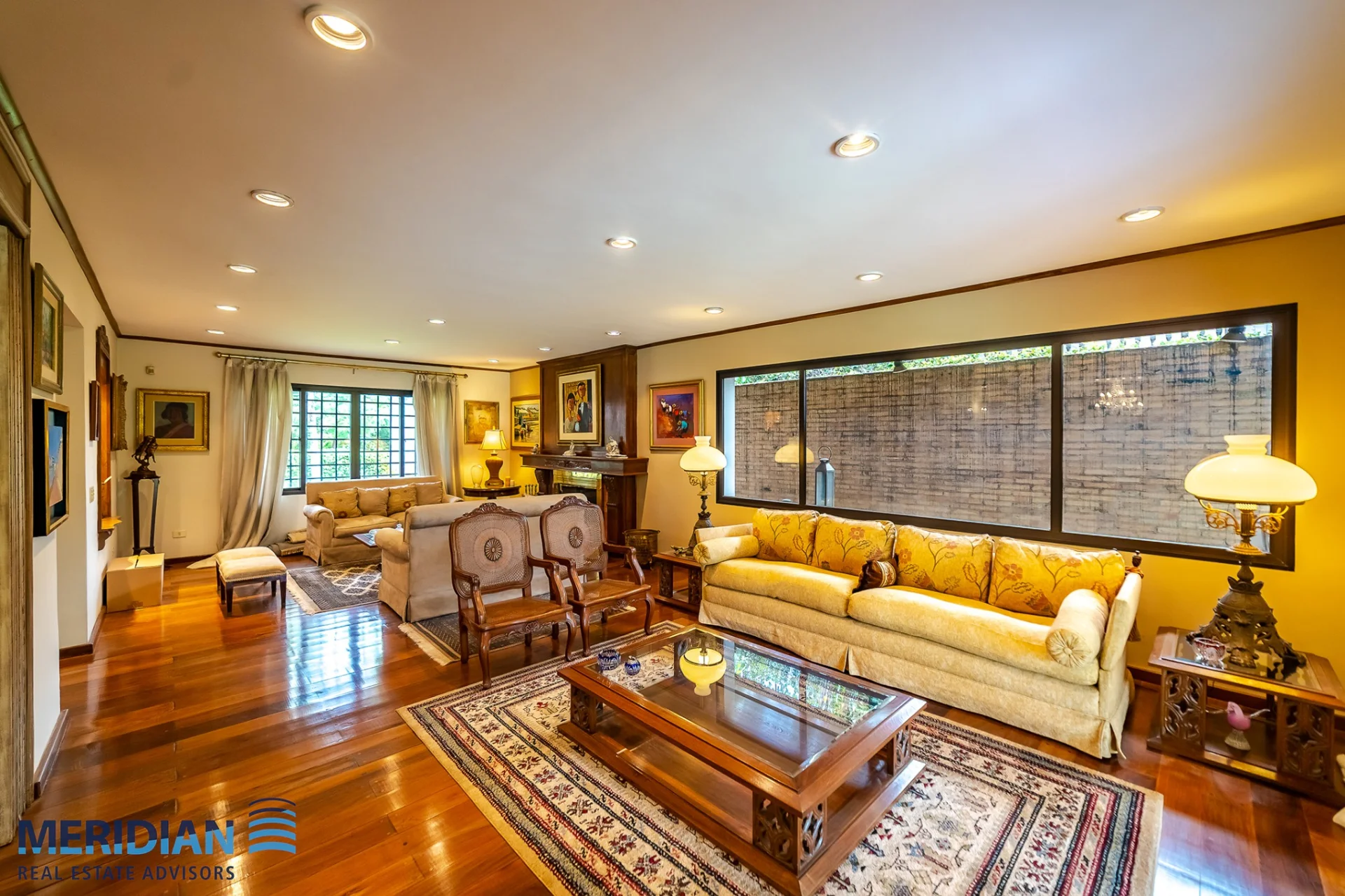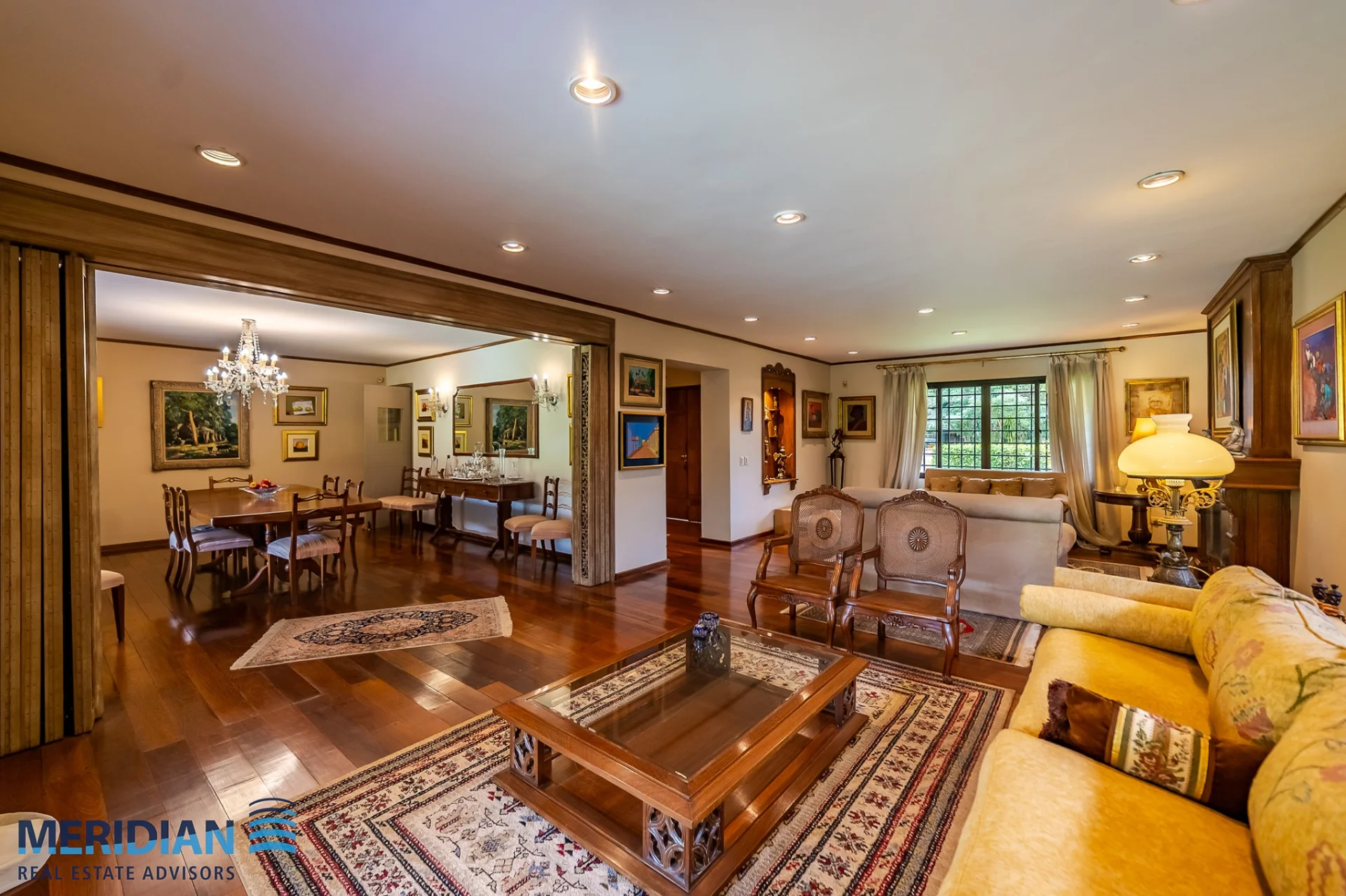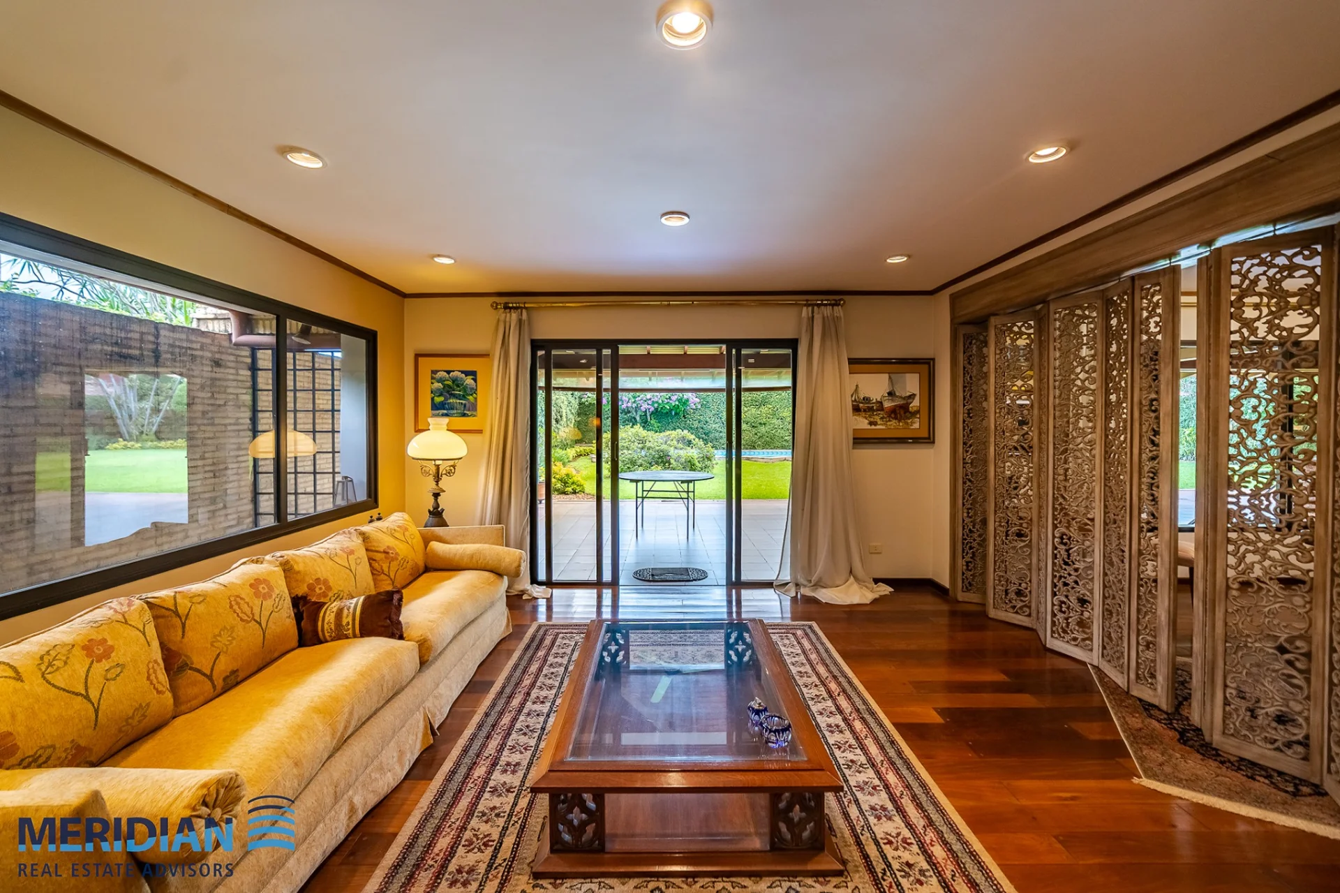 • Sala familiar amplia con separador de madera calada tipo biombo