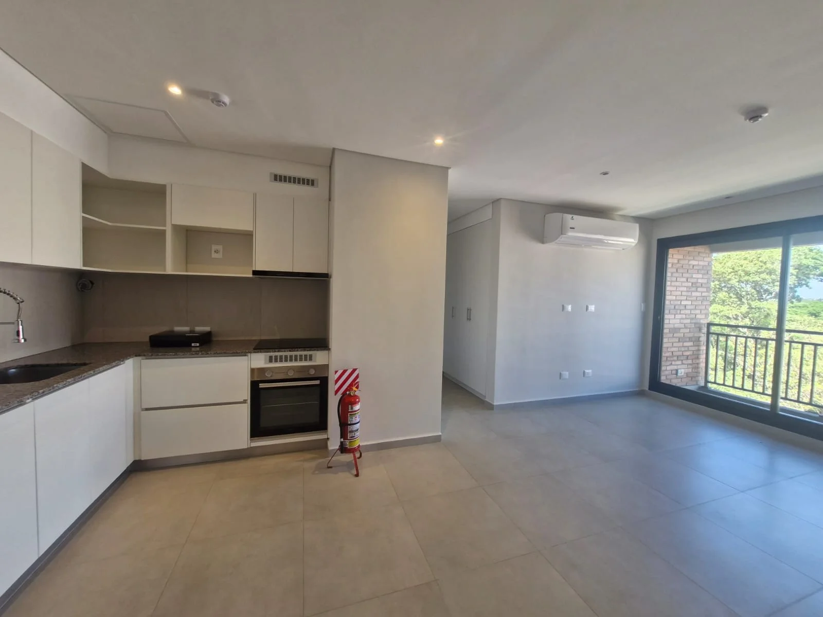 1 Living social con cocina integrada, balcón con parrilla