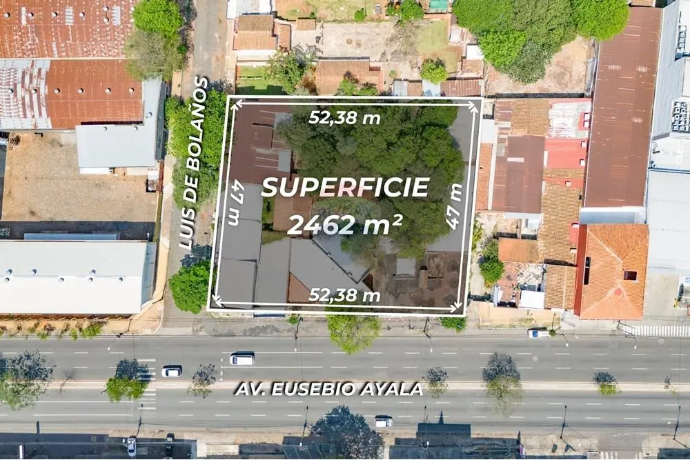 Excelente propiedad comercial en esquina sobre la Avda. Eusebio Ayala esq. Luis de Bolaños, Asunción. Posee 3 cuentas corrientes catastrales.