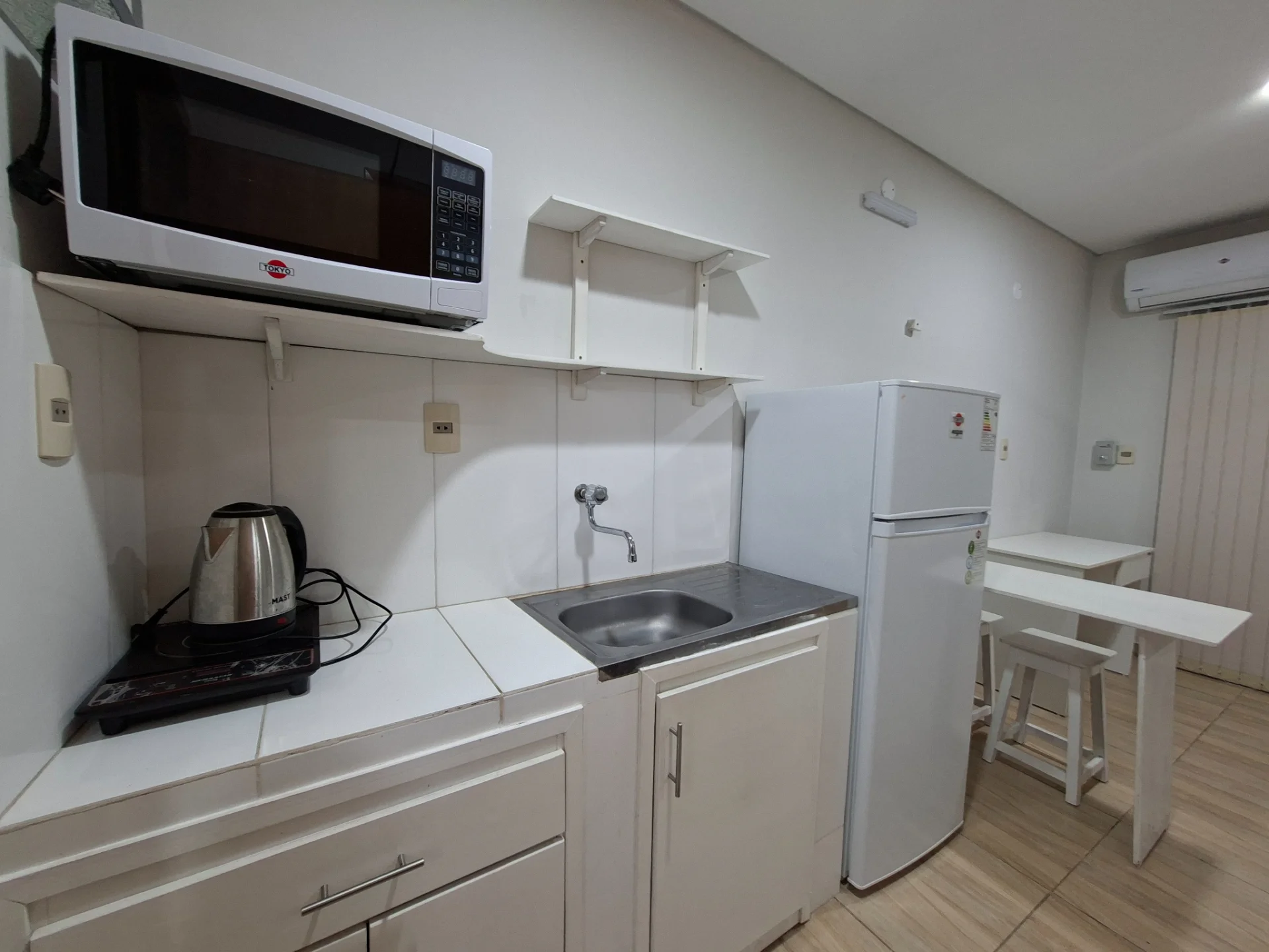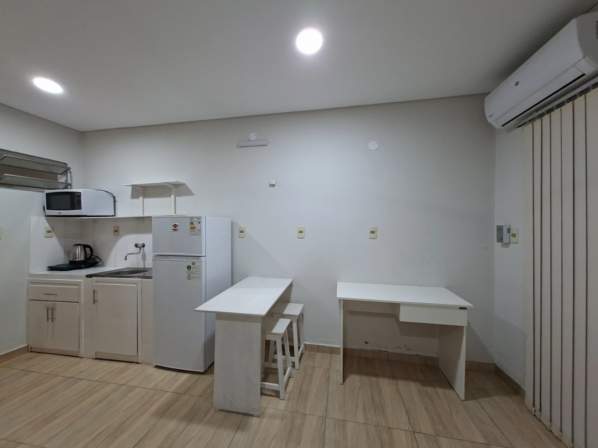 Dormitorio con cocina tipo kitchenette integrada