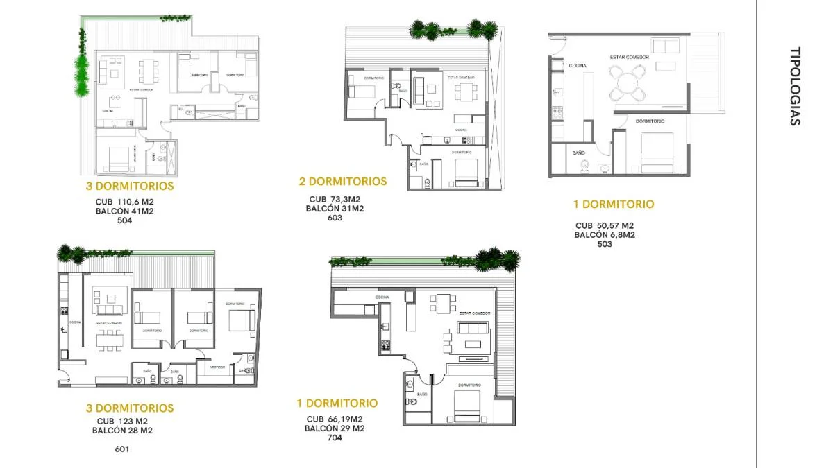 - Monoambientes, 1, 2 y 3 dormitorios