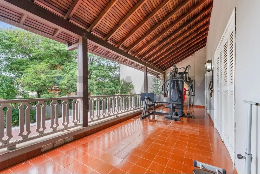 Ascendiendo a la planta alta, encontramos un escritorio privado, una máster suite con un vestidor excepcionalmente amplio, dos habitaciones adicionales que comparten un baño familiar, un estar íntimo para momentos de relajación y un balcón tipo galería, actualmente adaptado como gimnasio, que ofrece vistas y un espacio funcional.