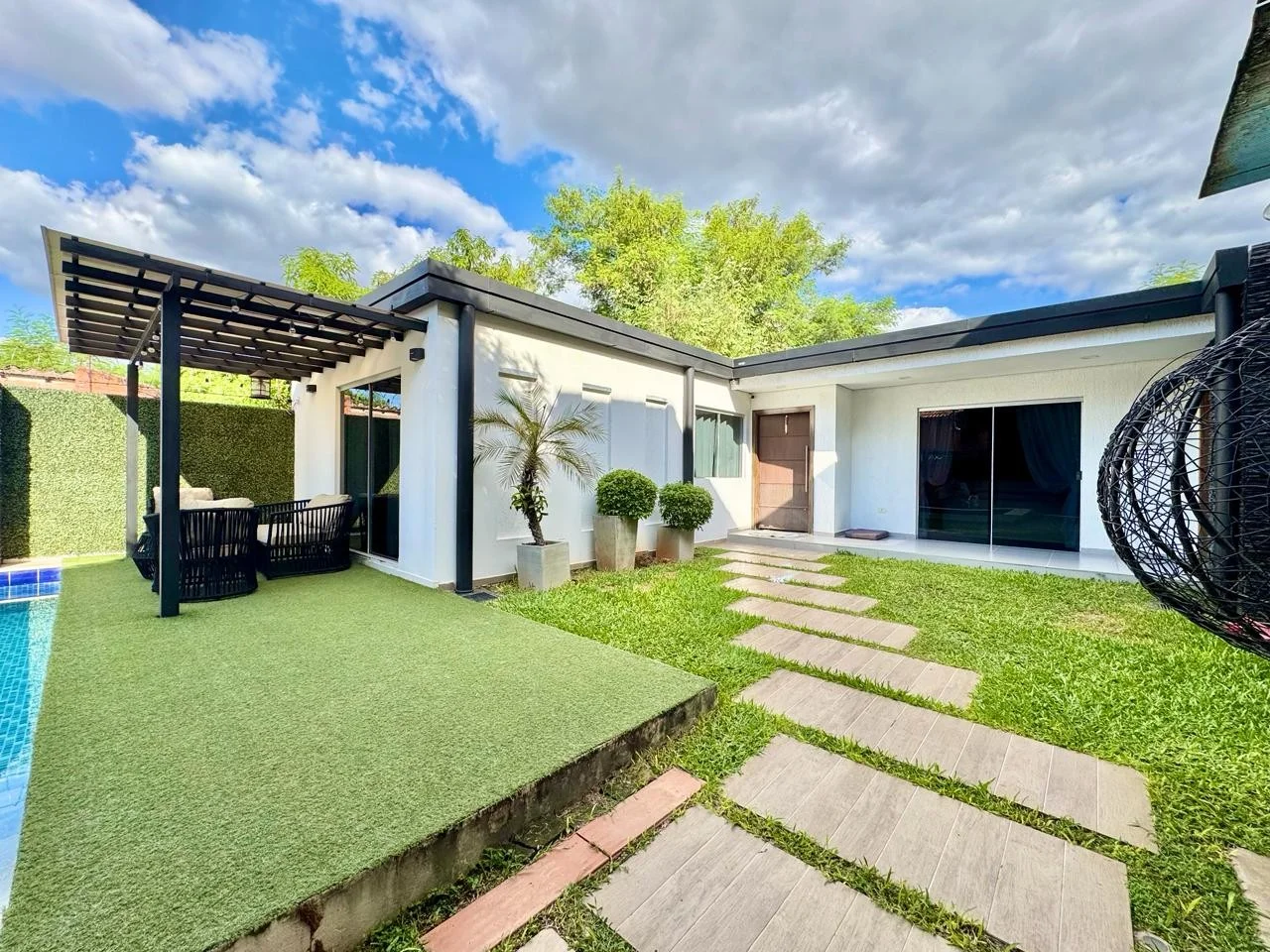 Patio con piscina y quincho, ideal para disfrutar