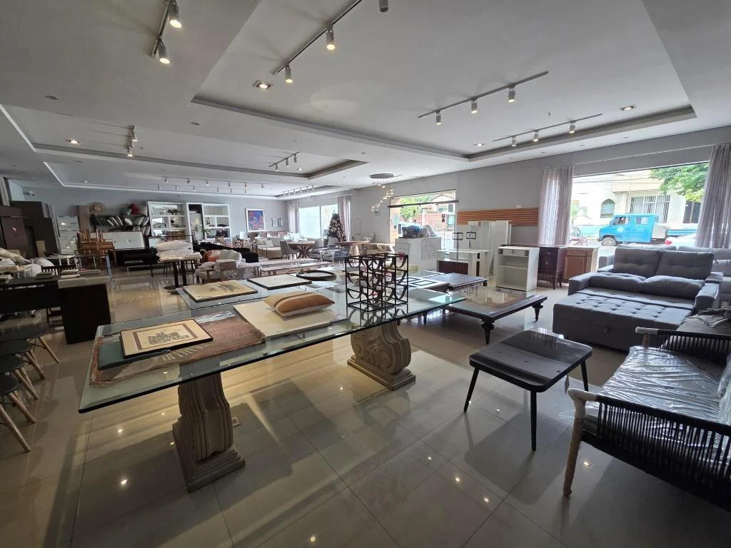Planta baja: Estacionamiento, salón de venta, Oficina, baño Soc., kichenette, lavadero, baño, 3 depósitos (90 m2) y sótano.
