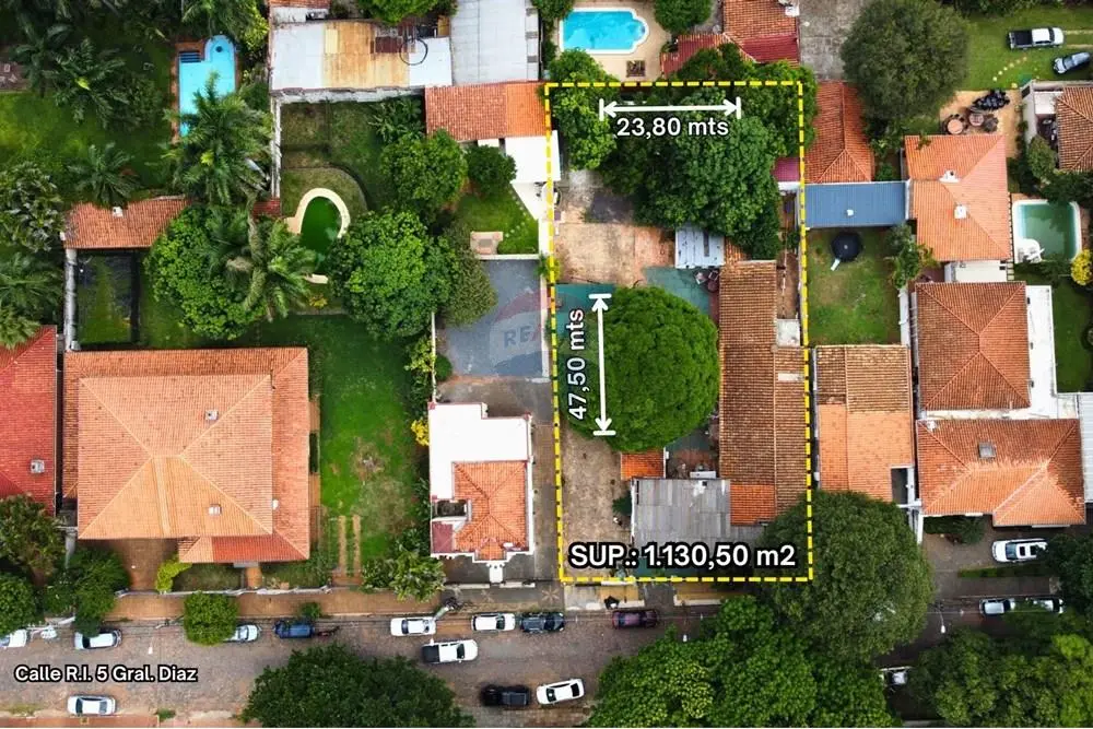 Este terreno de 1.130 m² (???? 23,80 m de frente x 47,5 m de fondo) está ubicado sobre la calle R.I. 5 Gral. Díaz, entre Dr. Emilio Hassler y Andrés Campos Cervera, a pasos del Superseis, del Colegio Técnico Nacional, del Departamento de Identificaciones y de los principales centros comerciales y avenidas como Mcal. López, Guido Boggiani, Eusebio Ayala y Rca. Argentina. ????????????
