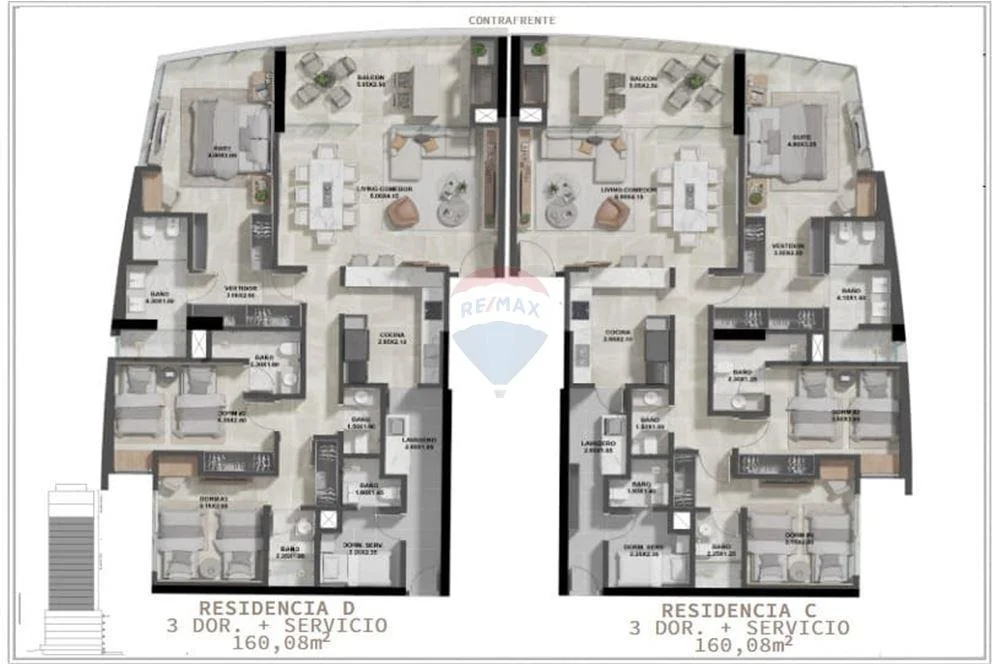 TIPOLOGÍA C: 3 DORMITORIOS + ÁREA DE SERVICIO 160,08m2 de DEPARTAMENTO