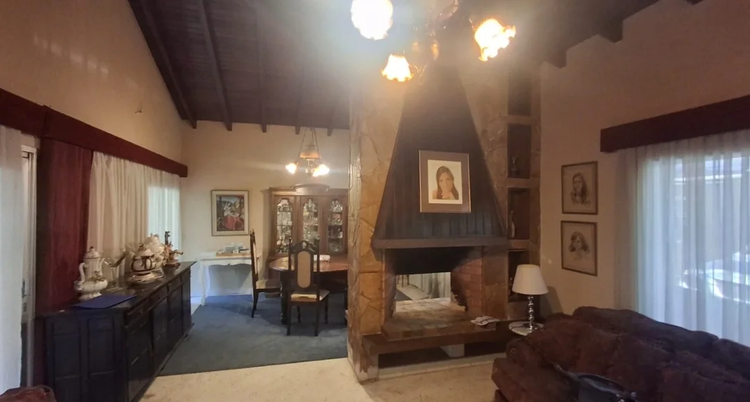 Amplio Estar Comedor con chimenea frente a la cocina.