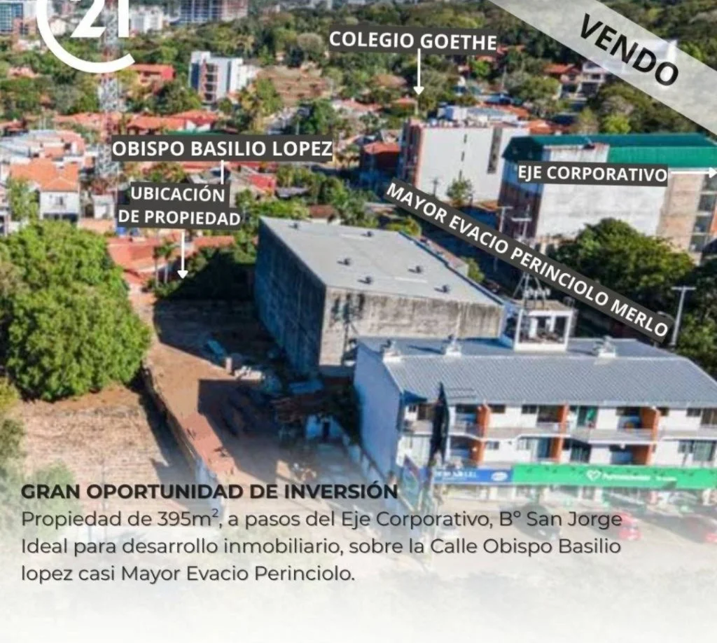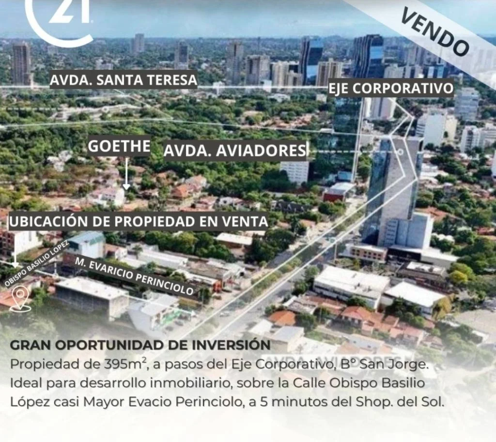 Gran Oportunidad!! Vendo amplia propiedad ideal para desarrollo inmobiliario, ubicada sobre la calle Obispo Basilio Lopez casi Mayor Evacio Perinciolo Merlo, ubicada a una cuadra de la Avda. Aviadores del Chaco y a solo 7 minutos del Shopping del Sol, zona Colegio Goethe, en inmediaciones a importantes desarrollos inmobiliarios y entre otros.