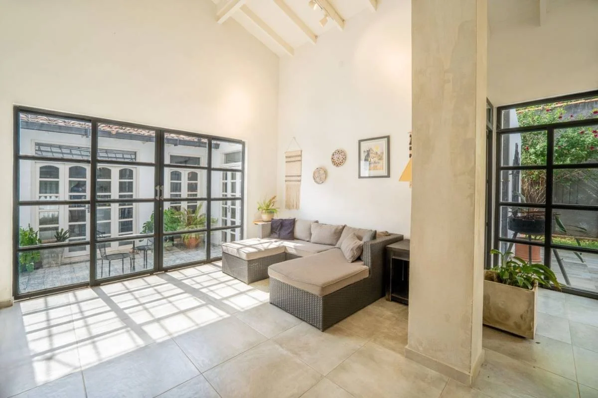 Uno de sus grandes encantos es la iluminación natural que inunda los espacios. Gracias a un diseño inteligente, cada ambiente recibe luz a lo largo del día, y el toque distintivo que tiene con baldosas de mosaico que proyecta reflejos únicos en el interior, generando un juego de colores y sombras que realzan aún más el carácter acogedor del hogar.