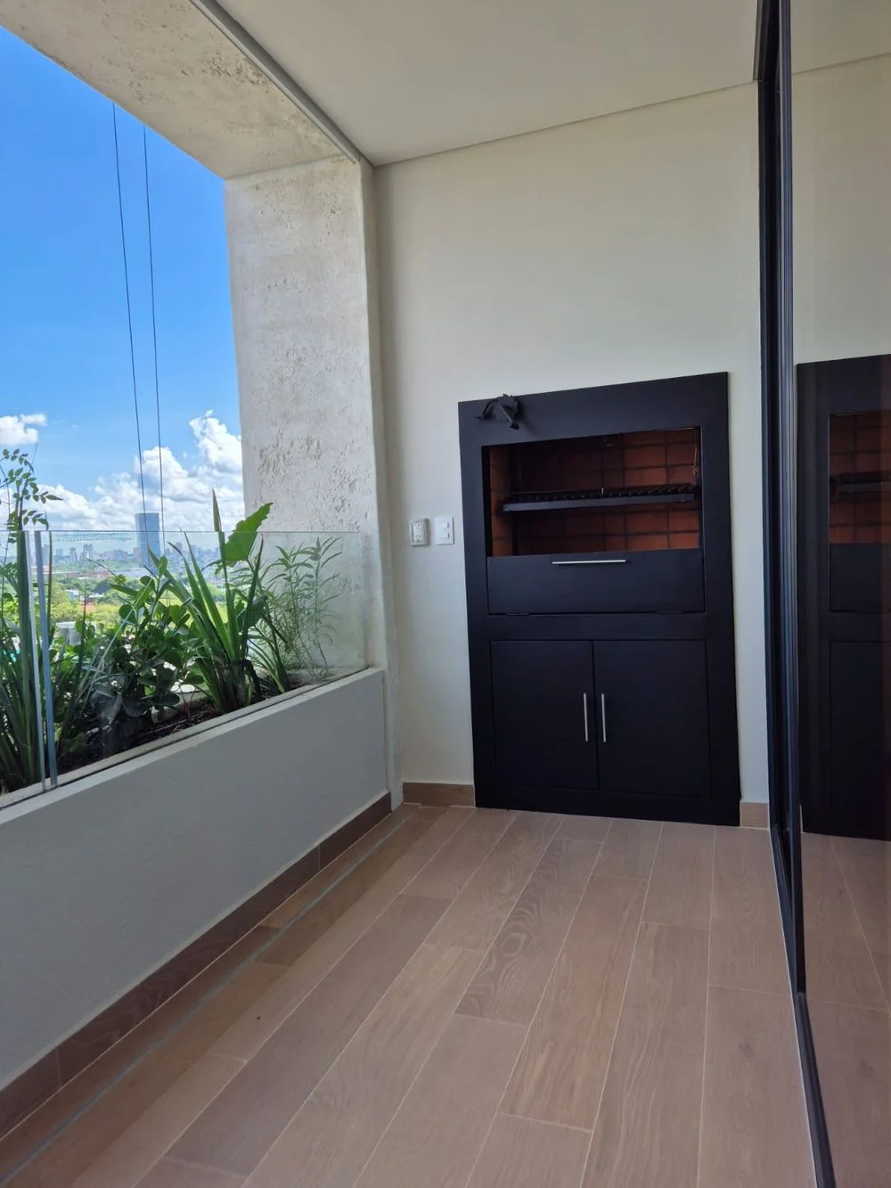 Amplio balcón con parrilla