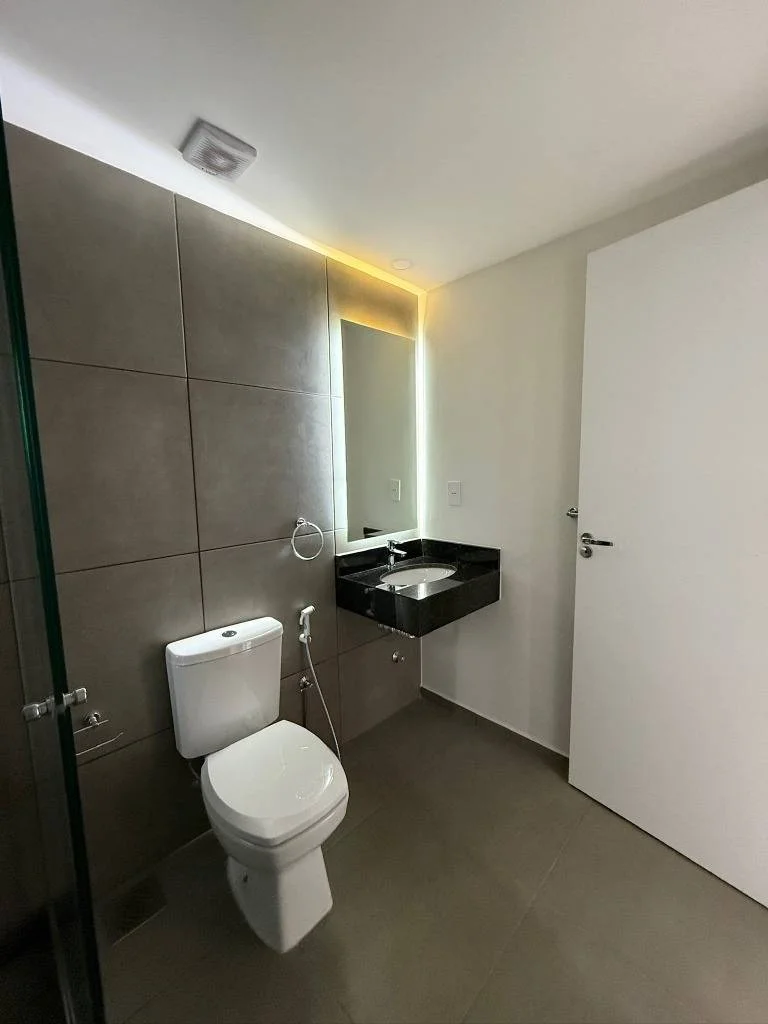 Baño (mampara de vidrio y espejo).