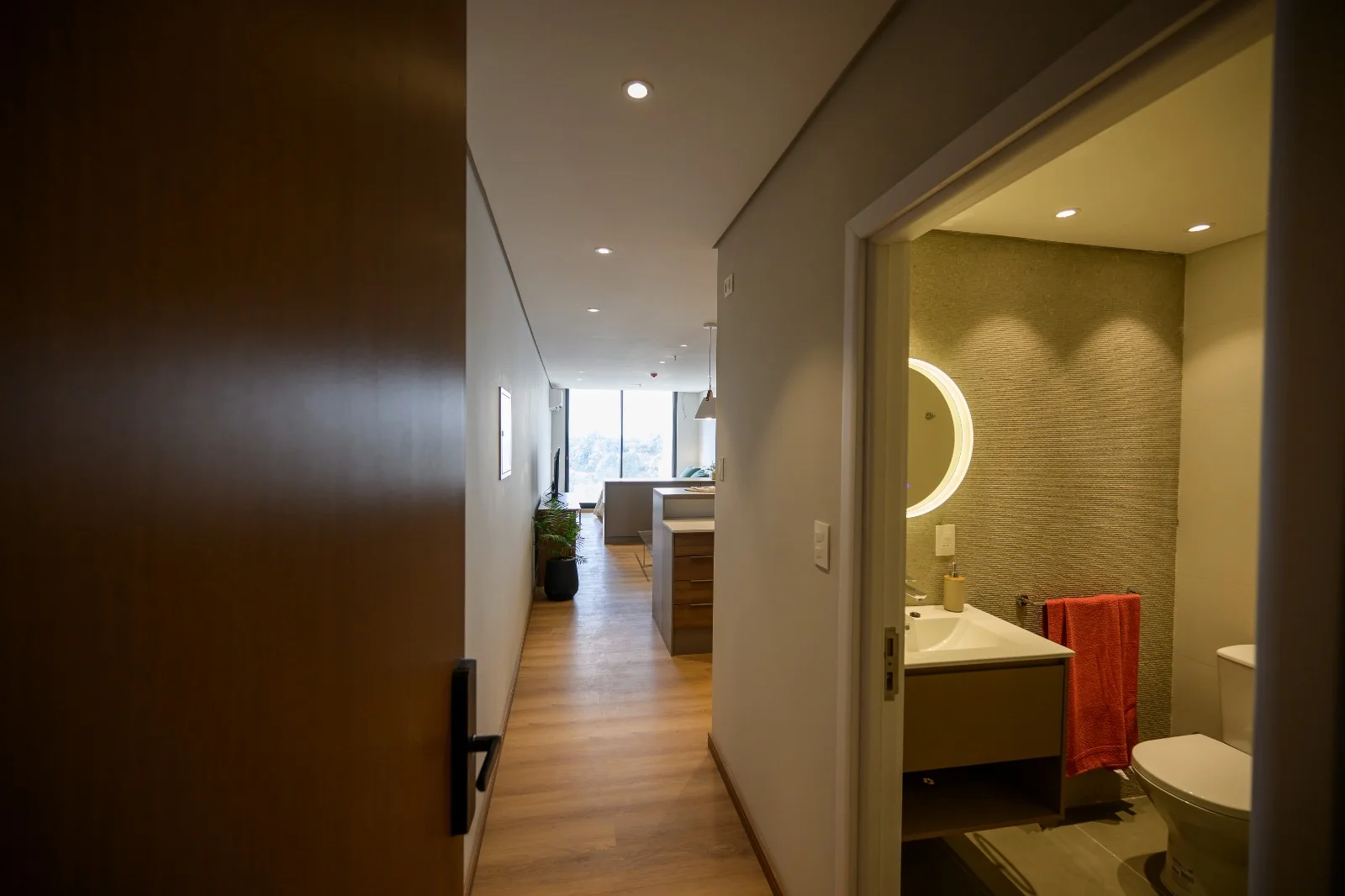 ???? Hall de acceso con control de seguridad centralizado.