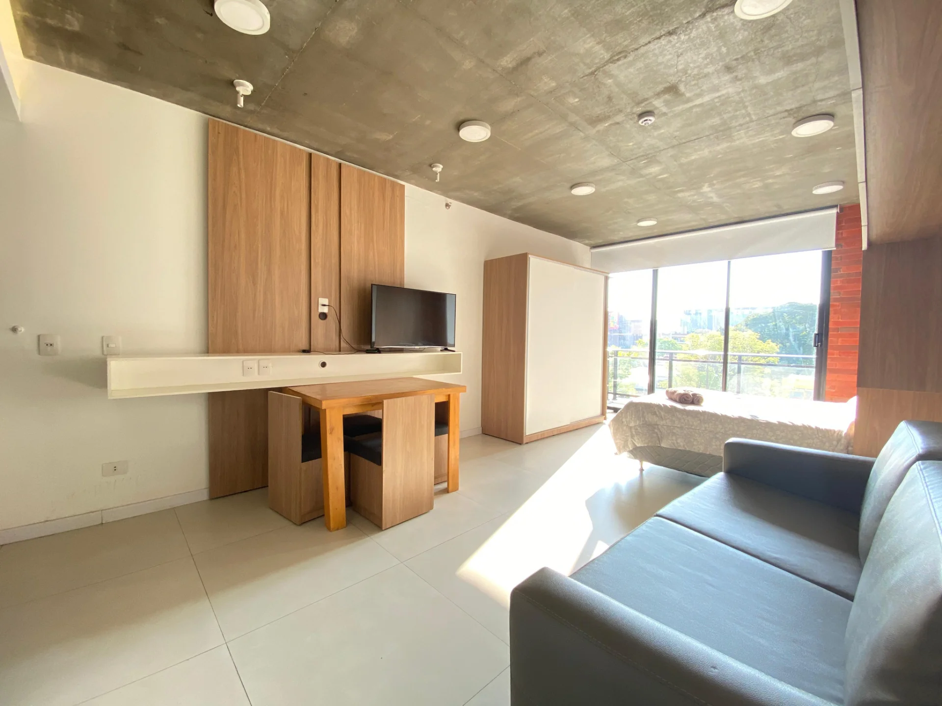 Cama, sofa, muebles televisor