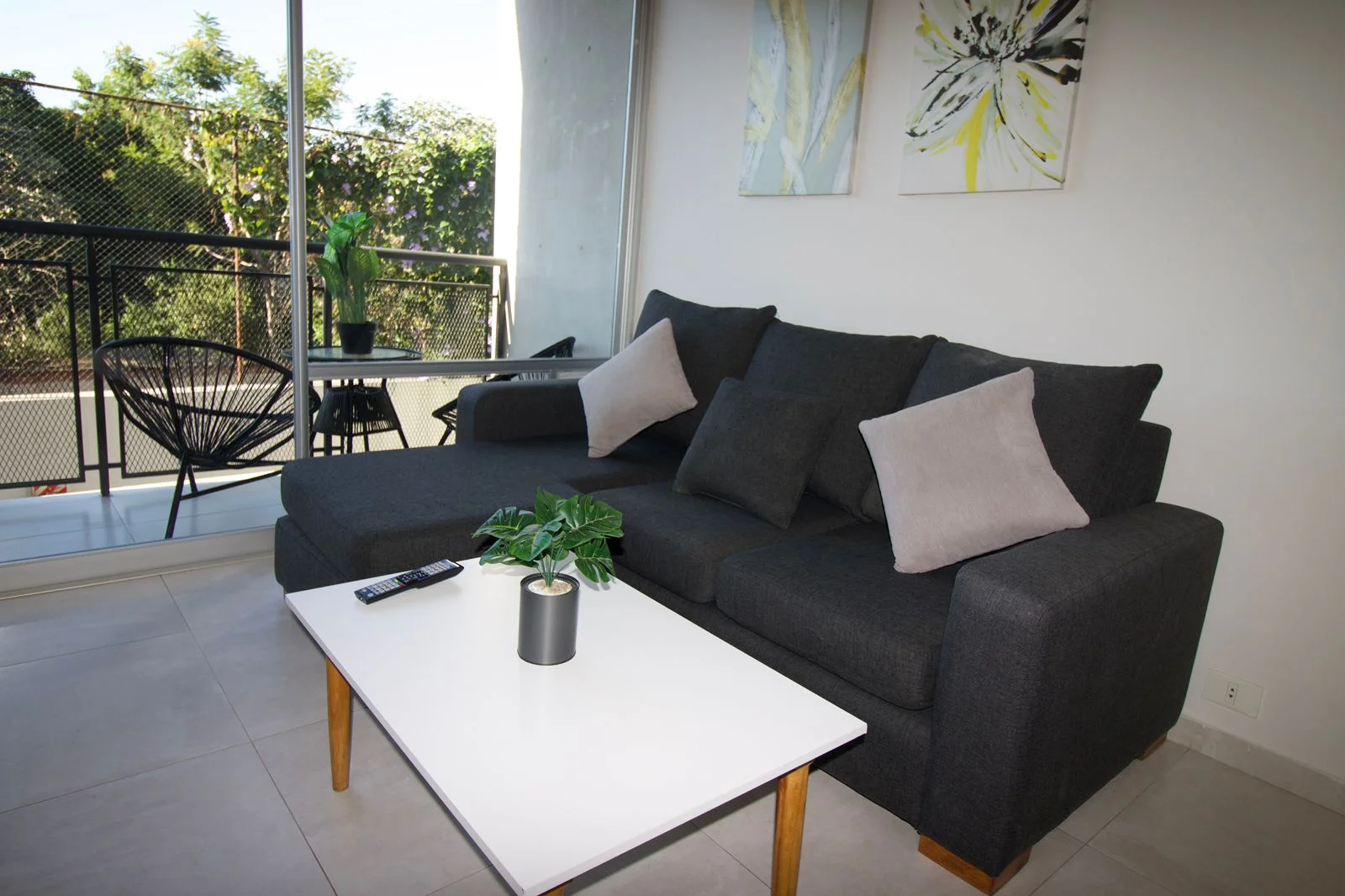 Hermoso departamento amoblado en VILLA MORRA a pasos del Shopping Mariscal. El departamento cuenta con: