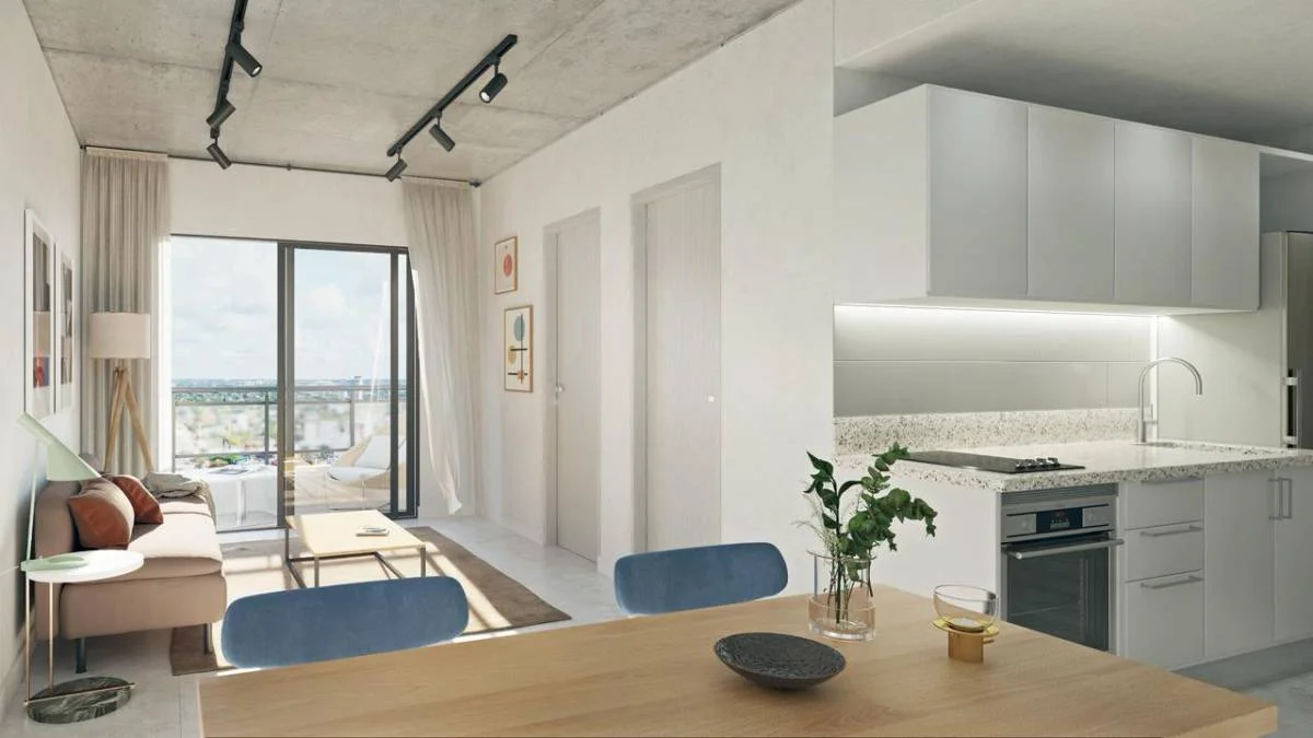 Edificio habitacional inspirado en el icónico estilo Bauhaus, combinando funcionalidad y estética, ofreciendo espacios modernos y acogedores para una vida urbana cómoda