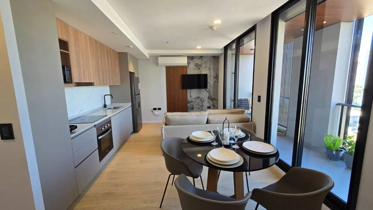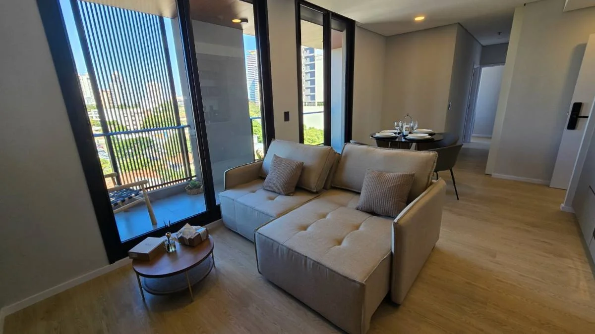 El departamento cuenta con confortables espacios de vida y de entretenimiento, con acabados de alta calidad y una vista espectacular de la ciudad. Cuenta con todas las comodidades modernas, como aire acondicionado, cerraduras digitales, cocina totalmente amoblada y equipada (horno, anafe, campana), aberturas anti ruido.
