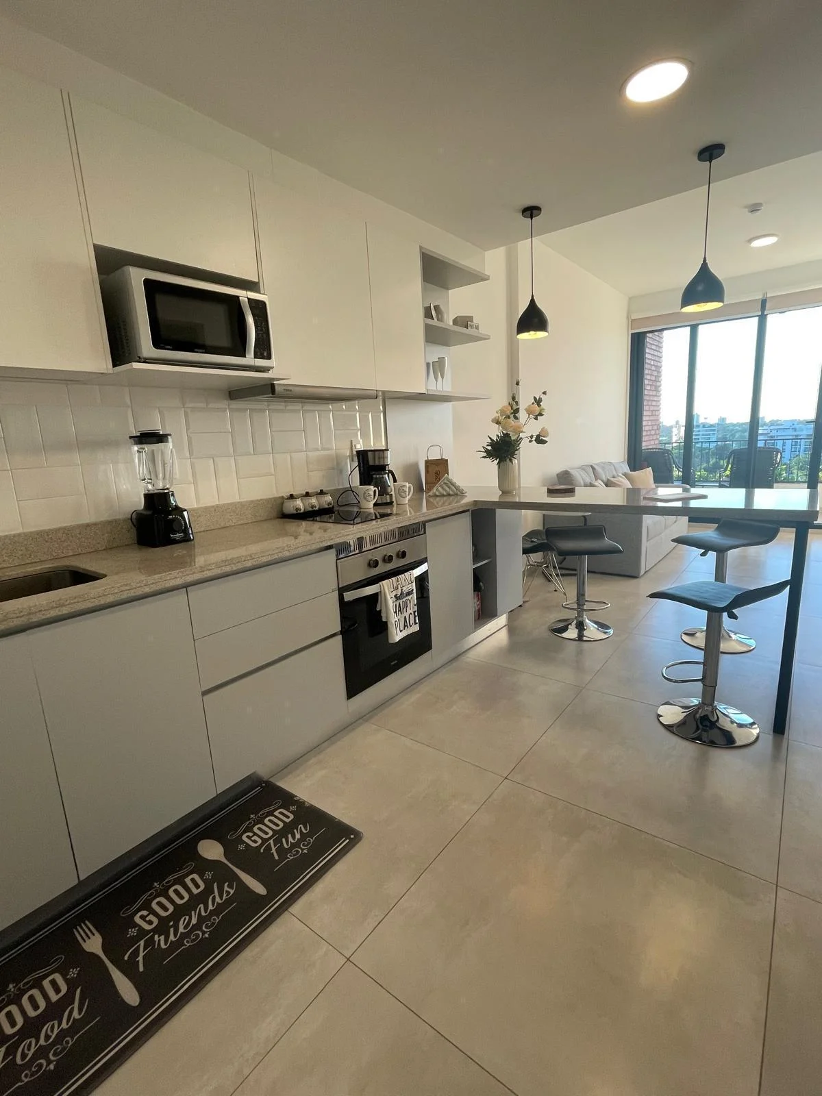 Todos los ambientes con A/A, termo calefón de 100lts. Muebles de cocina y placares de la marca Achon.
