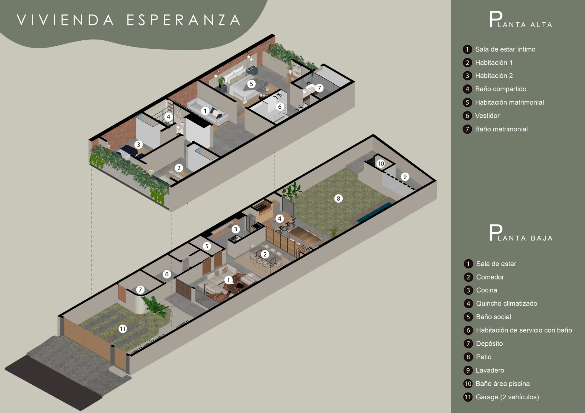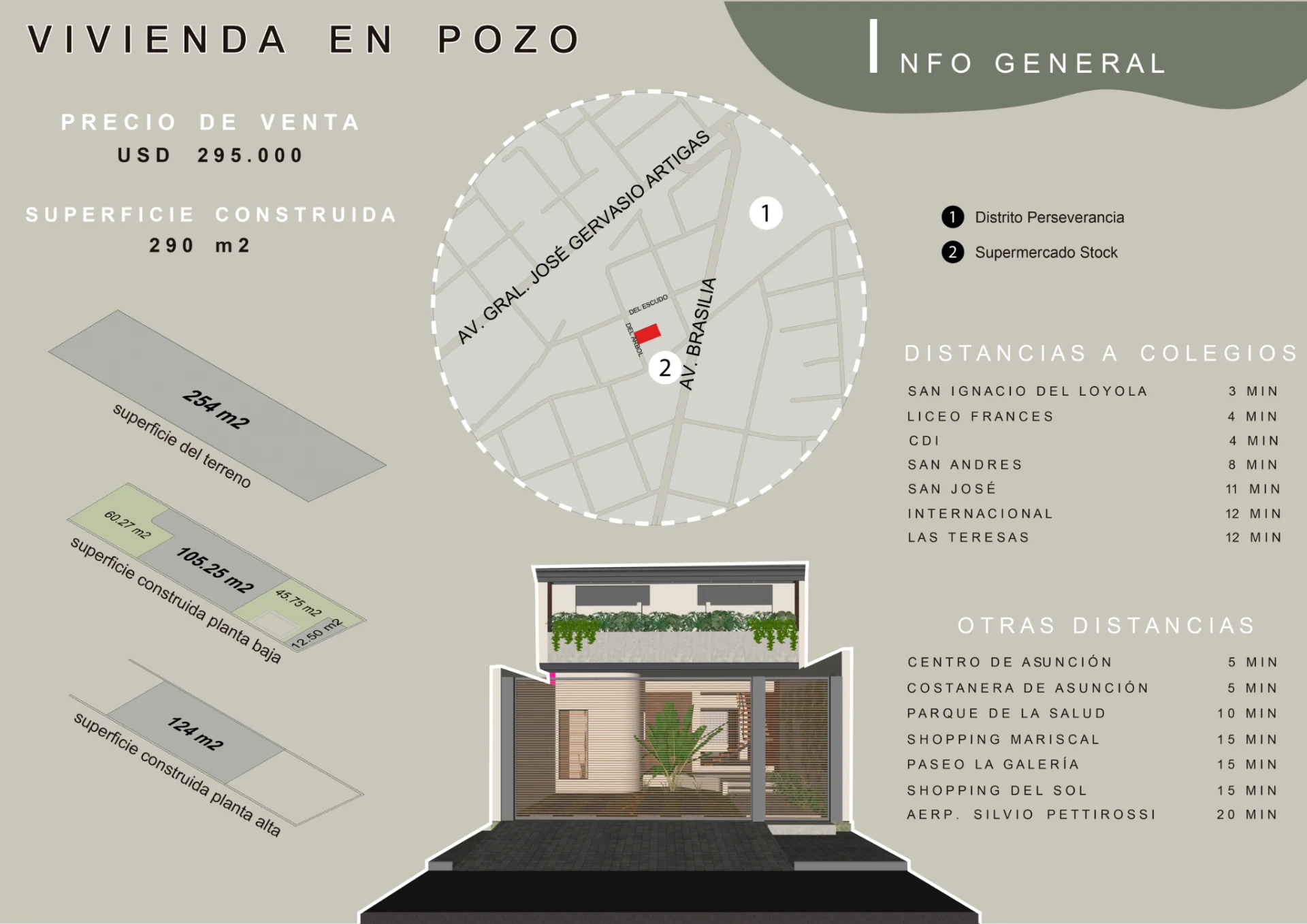 * Terreno de 254 m² • 290 m² construidos • 3 habitaciones una en suite