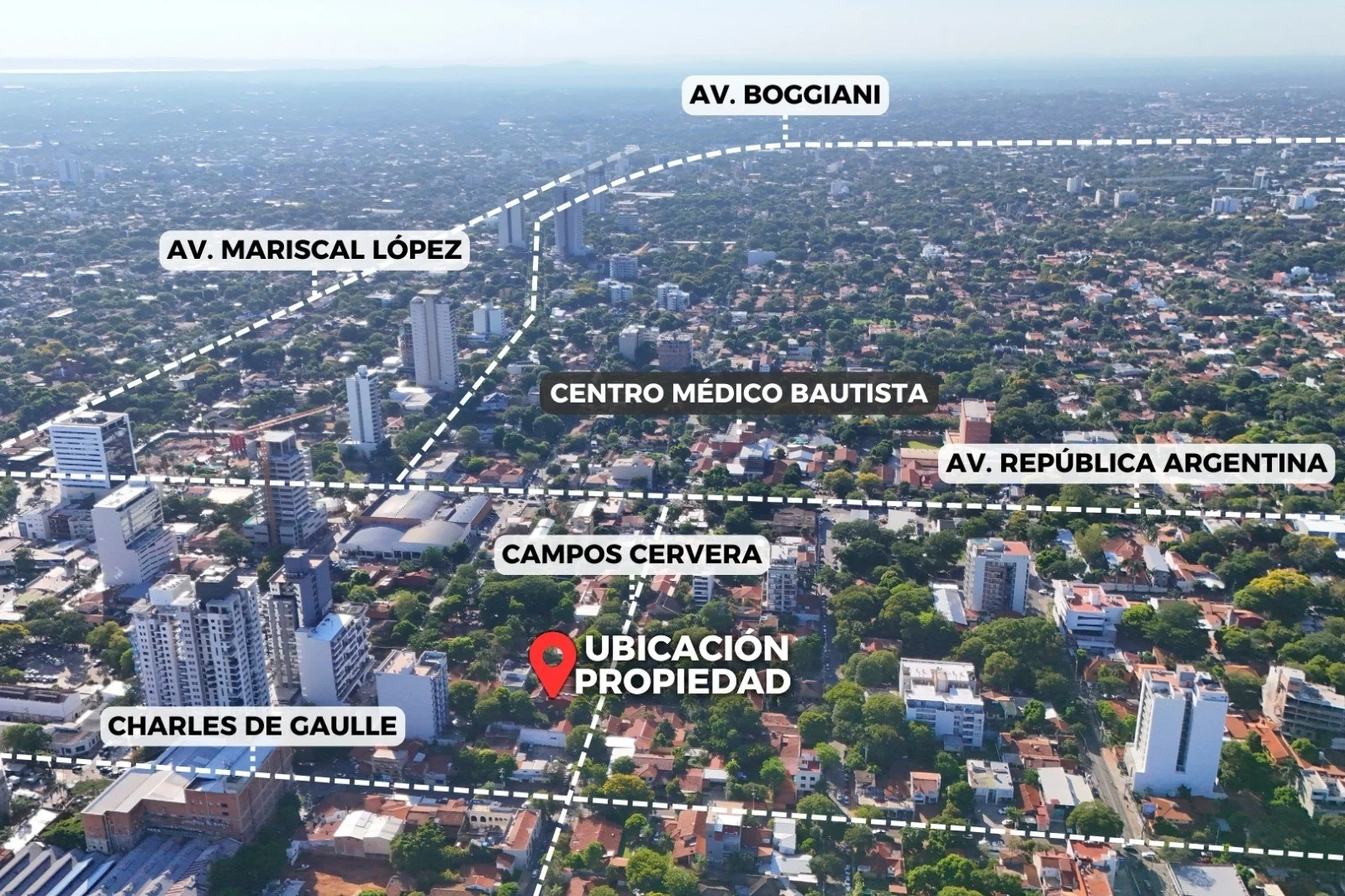 Ubicado sobre Campos Cervera, entre Charles de Gaulle y Cruz del Chaco.