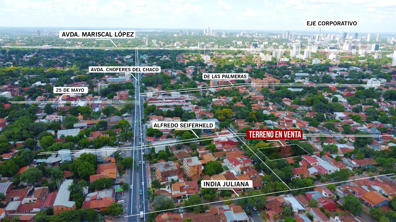 Esta propiedad se encuentra en una de las zonas de más alta demanda residencial de Asunción, debido a su ubicación, a 50 metros de la calle Alfredo Seiferheld, a 8 minutos del Shopping Mariscal y a tan solo 15 minutos del Eje Corporativo.
