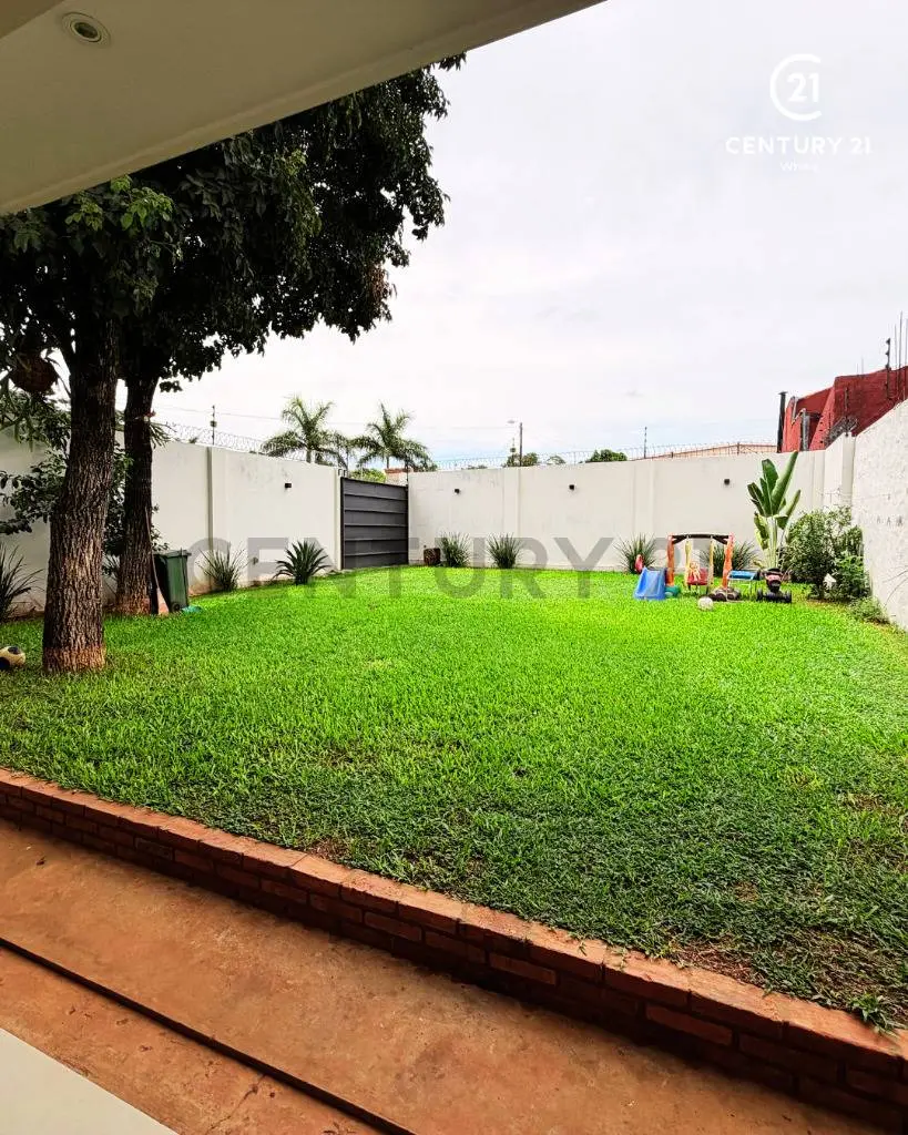 Amplio patio empastado.