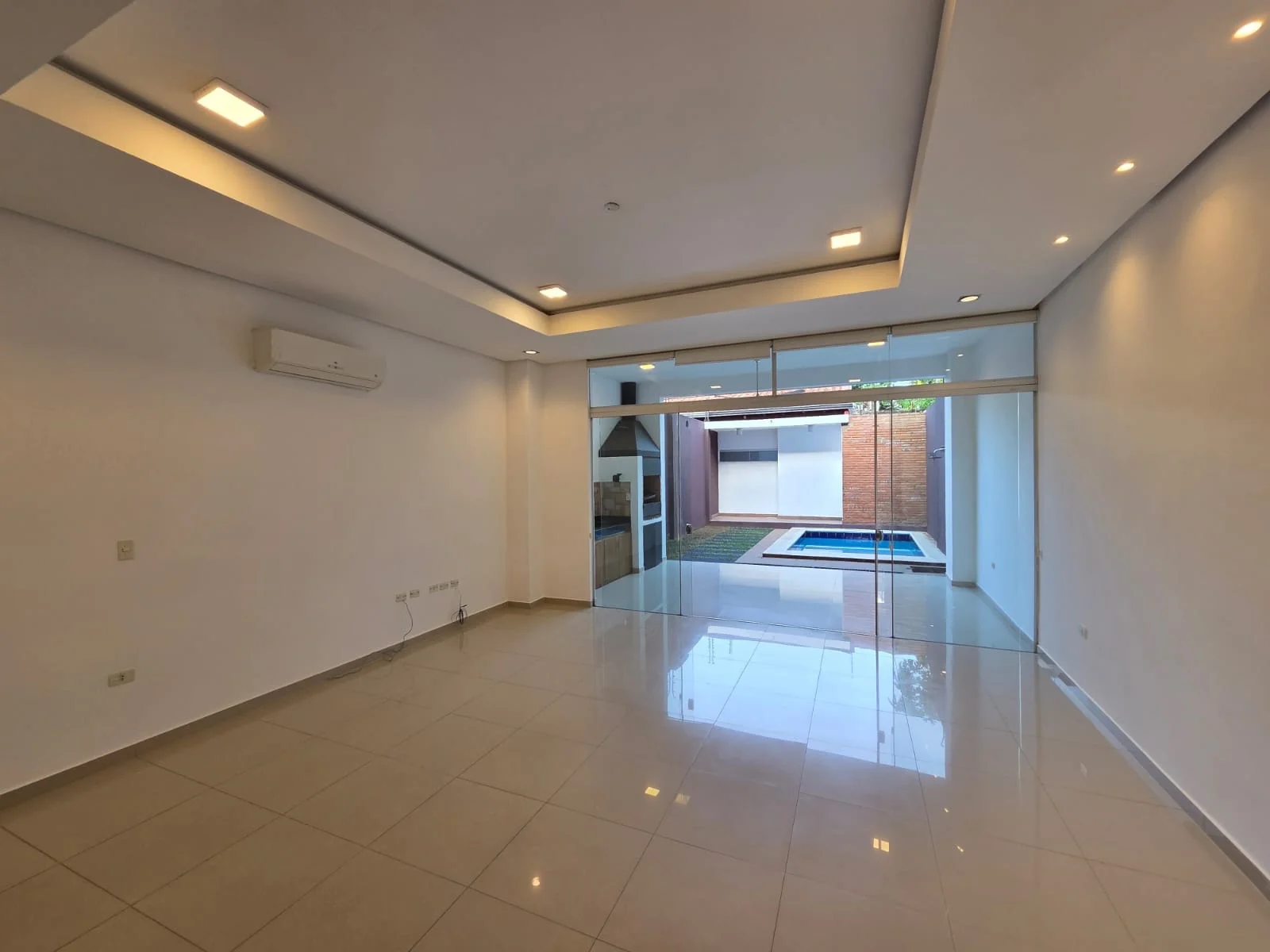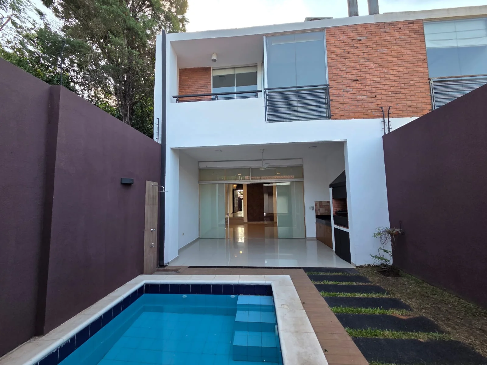 DÚPLEX CON PISCINA EN LUQUE Barrio América - Zona CONMEBOL Planta baja Garage techado Sala comedor Baño social Cocina amoblada Galería con parrilla Patio y piscina Área de servicio con habitación y baño Planta alta Estar diario 3 habitaciones en suite, la principal con vestidor. Todos los ambientes con cortinas anti solares y AA split