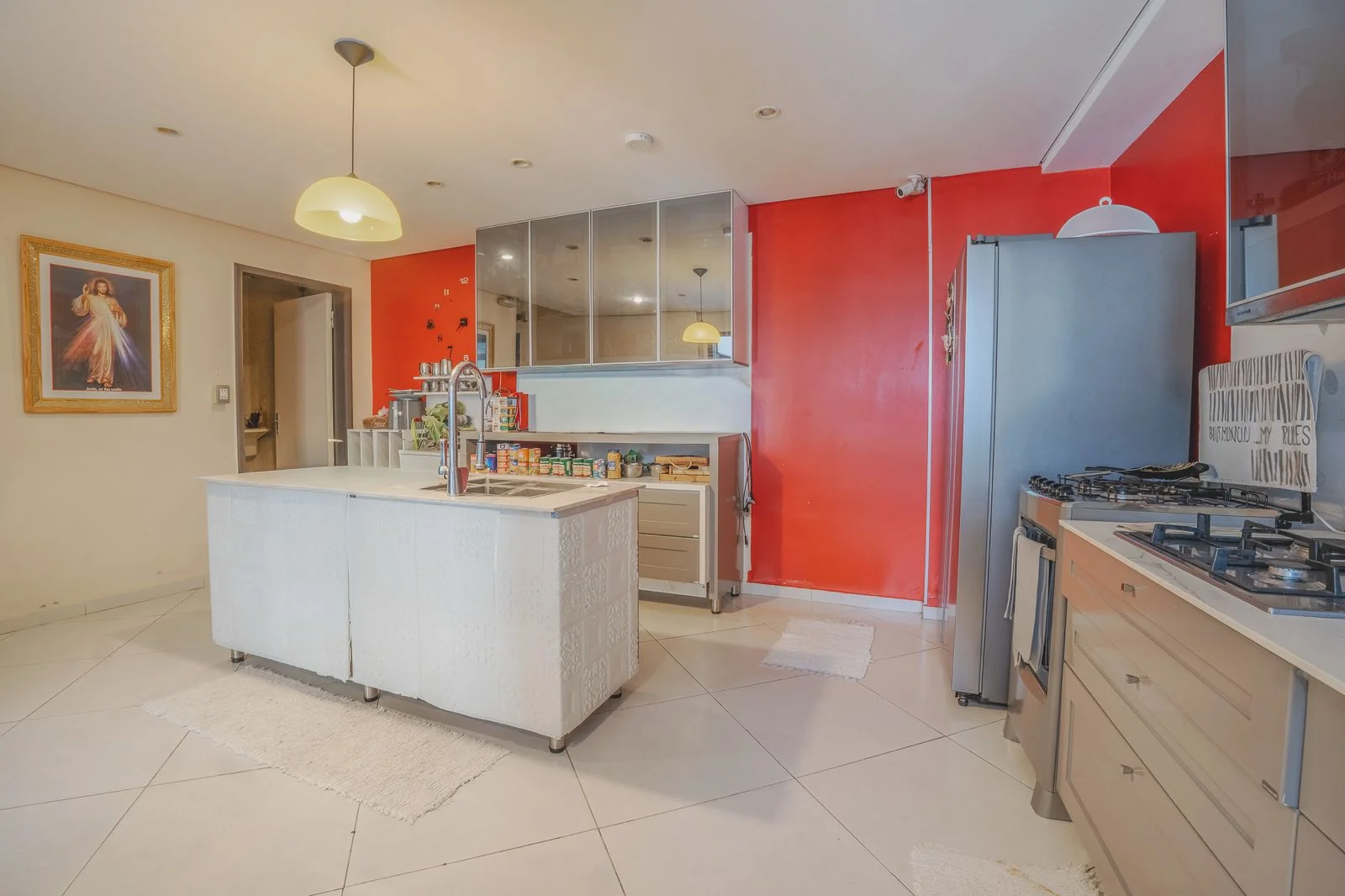 Cocina amoblada con comedor diario .