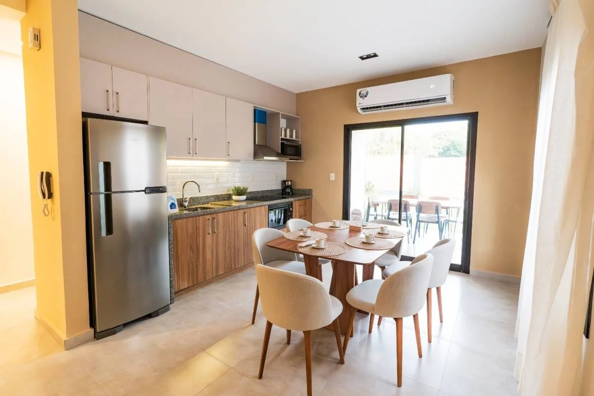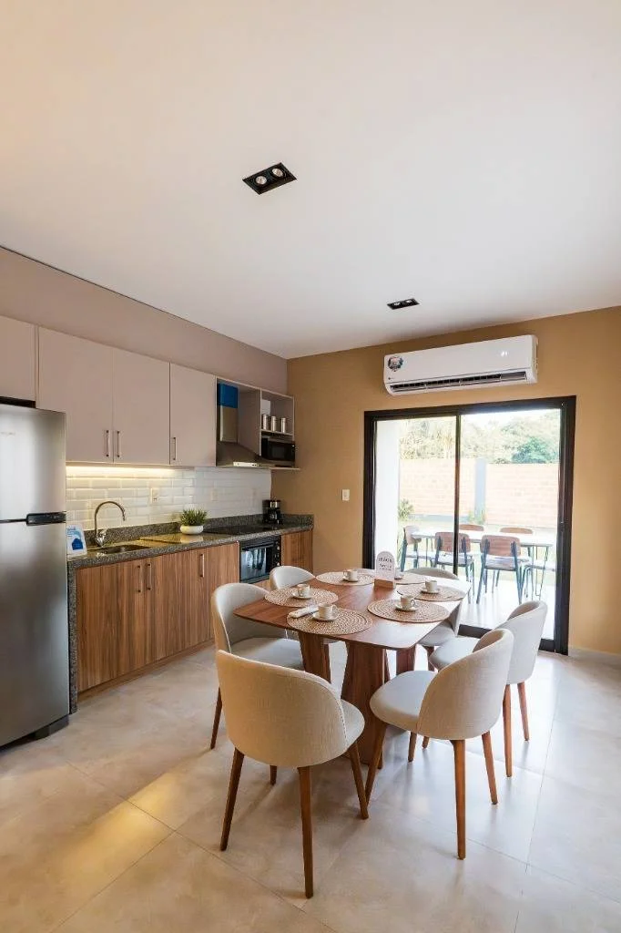 Opción 1: Totalmente equipada. Incluyen jardinería, muebles de cocina, placares y acondicionadores de aire.