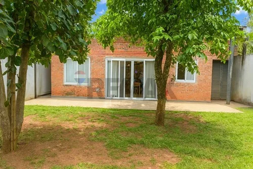 * Patio frontal y trasero con árboles que brindan sombra y frescura
