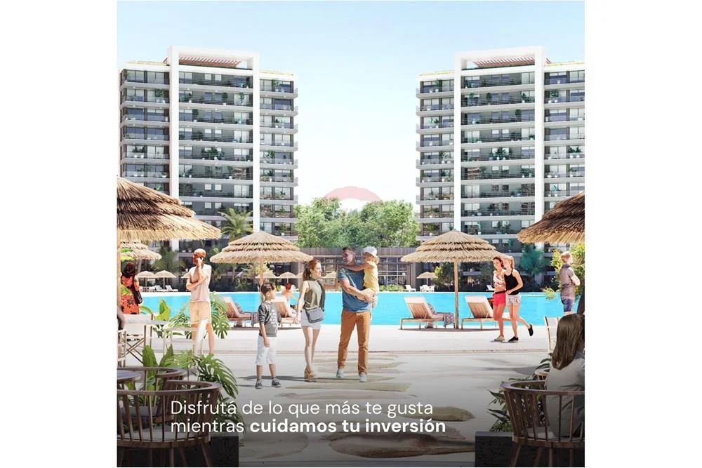 MARENA se compone de ocho edificios residenciales con balcones amplios y vistas extensas rodeando una laguna de agua cristalina con playa, palmeras y todo lo que alguna vez soñaste que sea tu hogar.