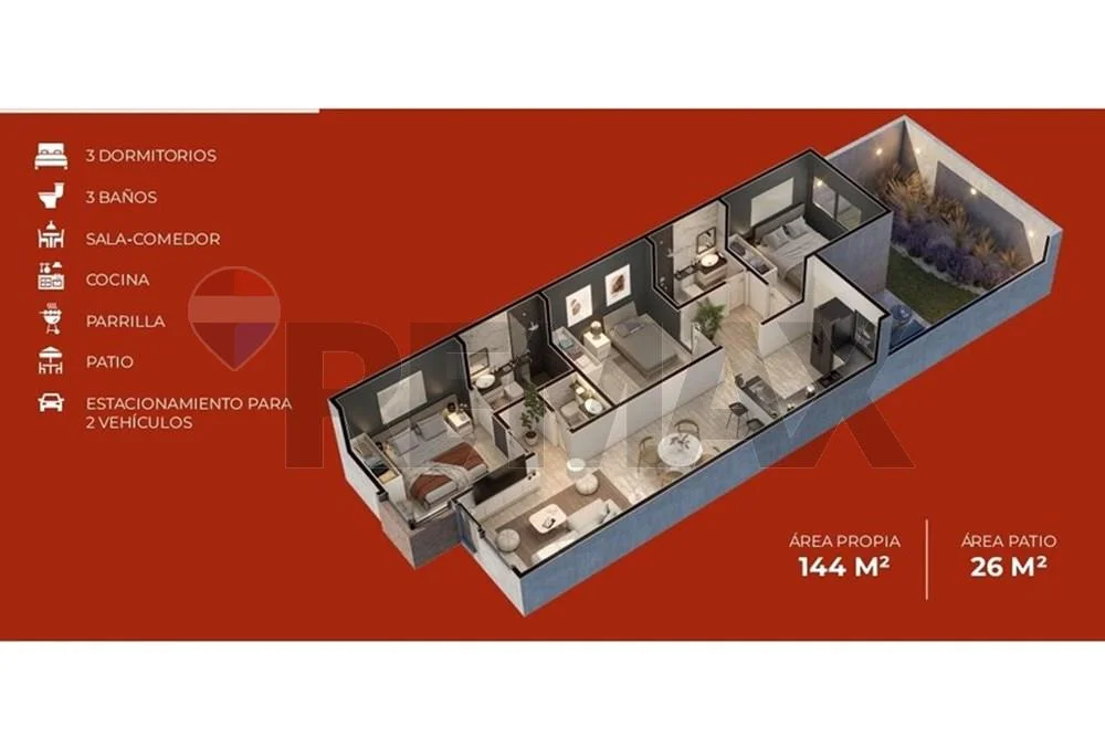 ???? Área propia: 144 m² Área de Patio: 26 m²