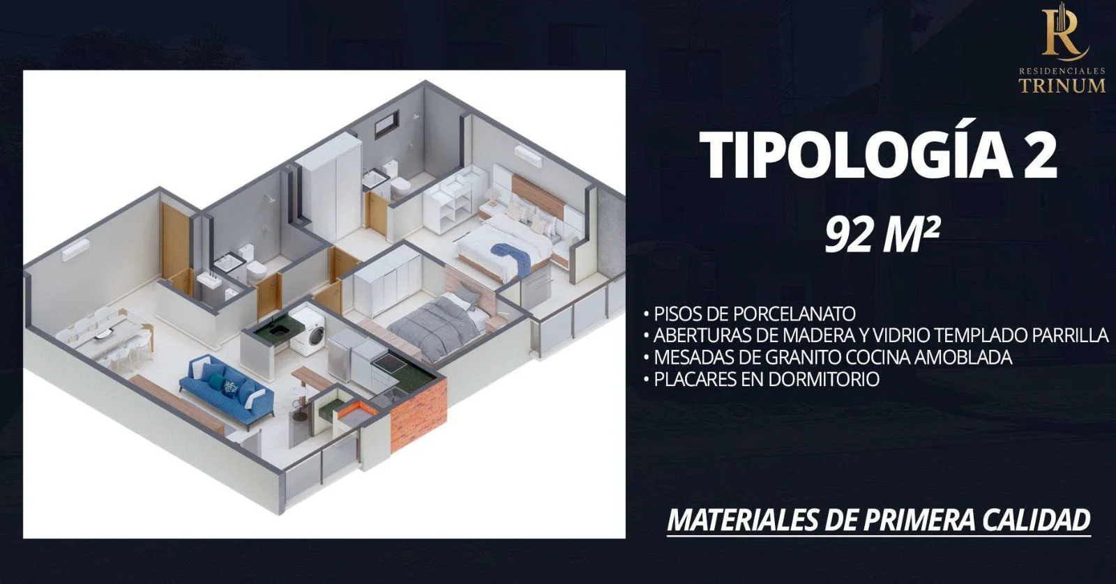 Dos dormitorios de 92m2