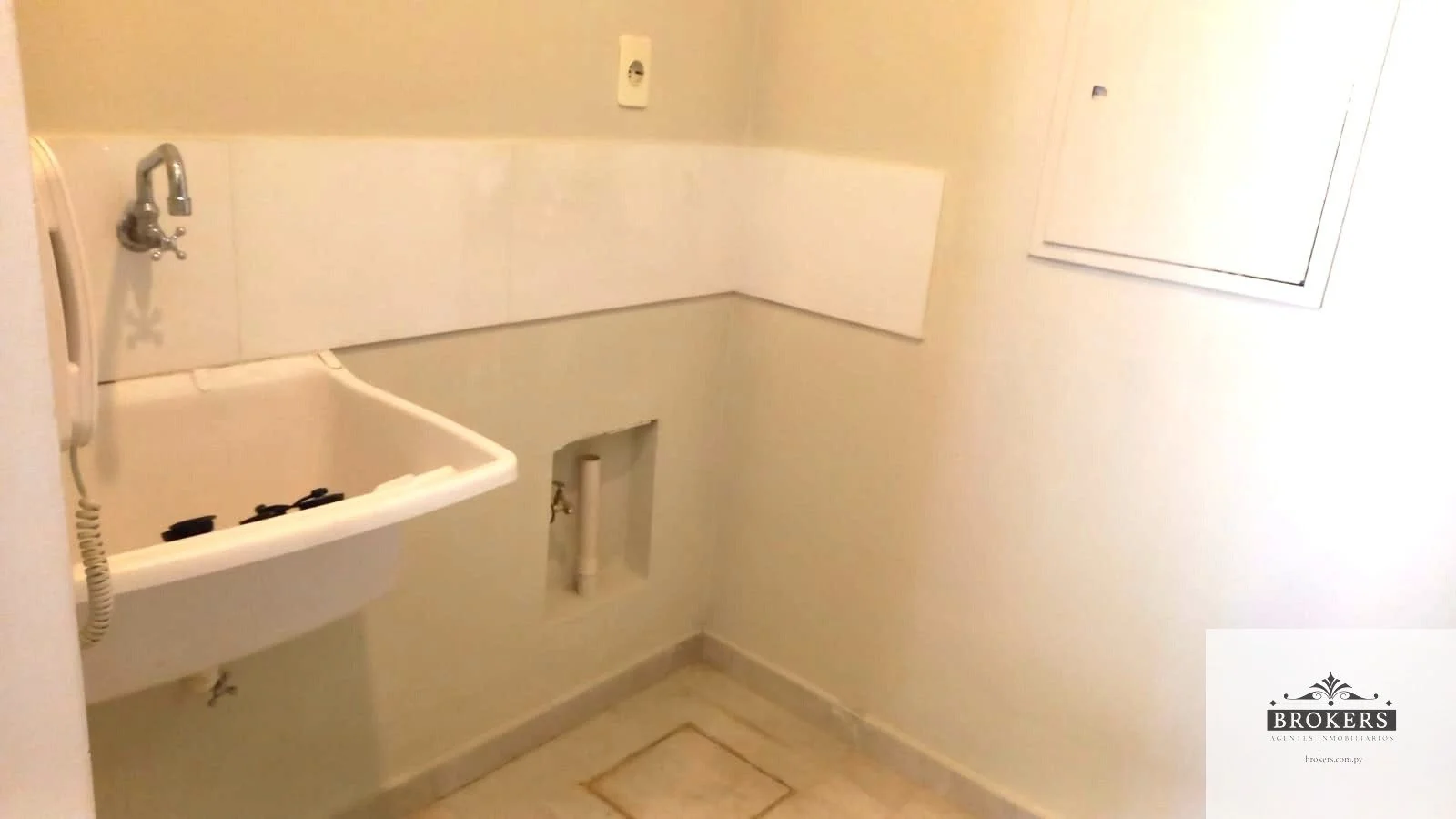 Lavadero integrado a la cocina con instalación para lavarropas y bacha