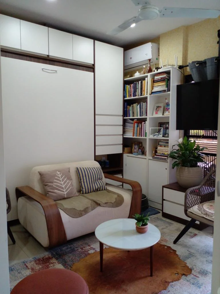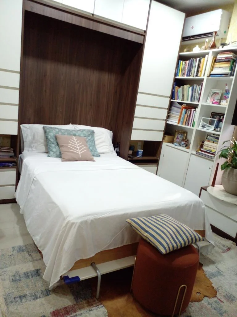 Monoambiente totalmente amoblado, con muebles a medida que aprovechan cada espacio.