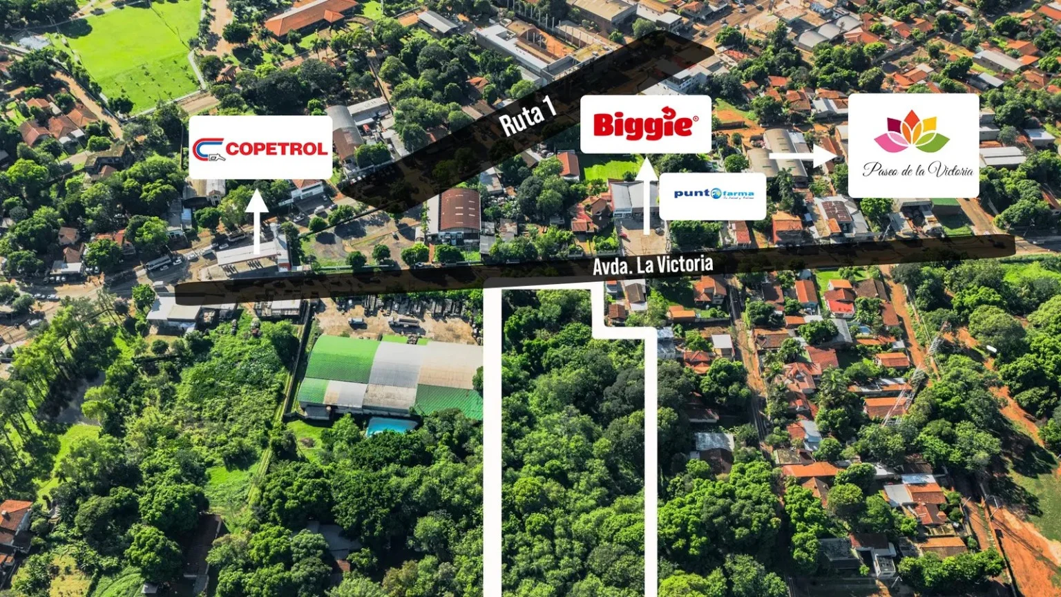 Ubicado en la ciudad de San Lorenzo, con 39,5m de frente sobre la Avda. De La Victoria, se encuentra a menos de 100 m. de la Ruta Departamental D027, anteriormente Ruta 1 y a tan sólo 1.5 km de la Ruta 2. Está a cinco minutos del centro de la ciudad y a diez minutos de la Avda. Mariscal López.